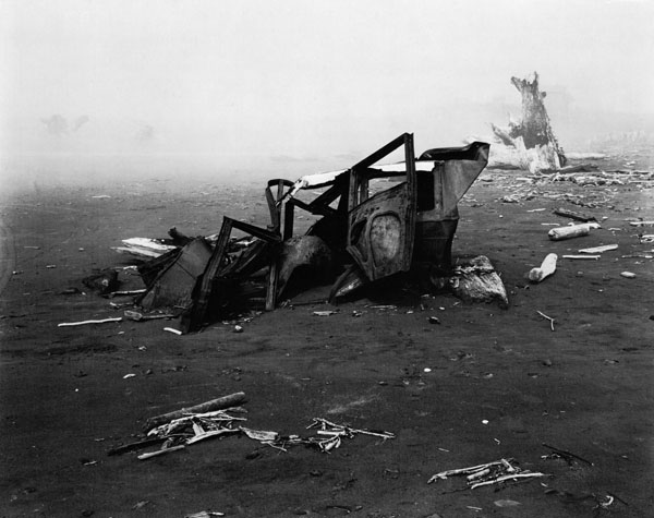 The car looked like a Model T, or what was left of it. It was more rightly, the carcass of a Model T with no wheels or tires, no engine, no seats. Only the body of the old car, rusted, bent, and disheveled, like an old woman with too many miles and too much booze. And booze might have been part of this car’s past since there had definitely been a wreck many years before, maybe a fatal one for that matter since the car was down on the beach near the water’s edge and one could imagine from all that twisted metal that the old car – new then – had fallen from a cliff not too far away. Crashed and burned after someone careened around a corner too fast and too drunk on the ocean road above and saw his or her life flash every so slowly before his/her eyes on the way down to the rocks below. The bench was strewn with other litter, not manmade except for the car, but drift wood and sticks, as if a tide came in routinely and surrounded the rusted old car with frothy waves, then receded leaving whatever detritus the water carried with it. Only a shell or two in the wet sand, and no cigarette butts or tin cans or lost beach gear, just driftwood and this old car, which looked as if it deteriorated a bit more with every tide.