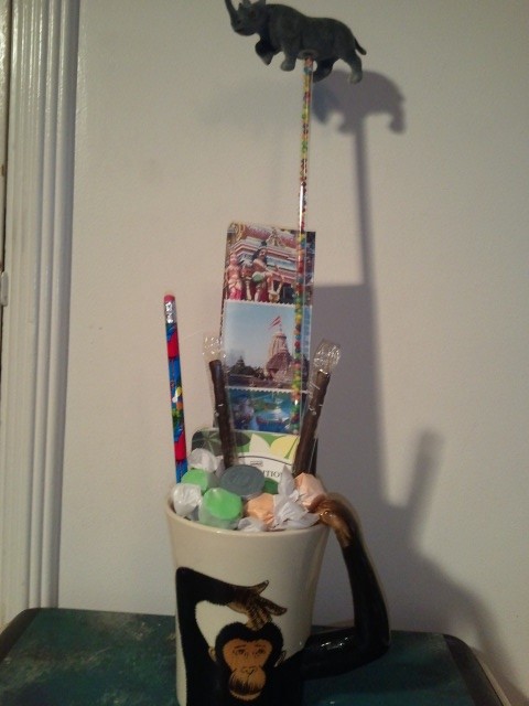 6:40 – 7:40 – I write part of my blog post, stop to take a picture of one of the favors for my students, and then return to finish.