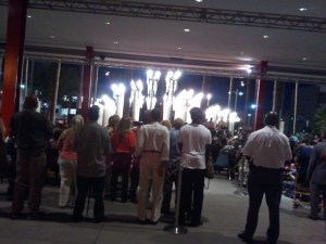 The band played with Chris Burton’s art installation Urban Lights as the back drop.