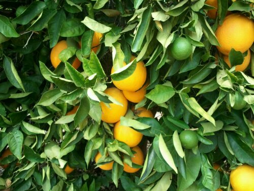 The trees at the orange grove have oranges that are still ripening on the branches right alongside white blossoms, many of which are just about to bloom. There is the faint scent of orange blossoms in the air, one of the lovliest fragrances on this earth. When all the blossoms are in full bloom, the air is sweet and intoxicating.
