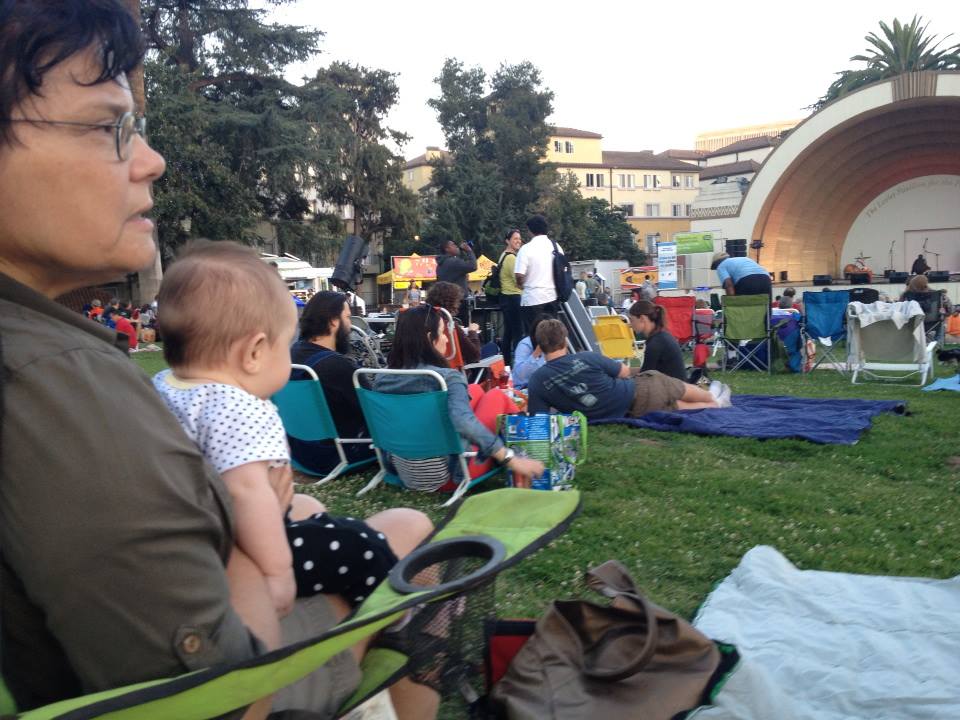 We have just returned from an evening with Sarah, Gregorio and Luna where we went to Levitt Pavilion in Pasadena and heard a band from Austin named Whiskey Shivers. The park was crowded with families and other residents of the city, and the night was cool. Everyone either brought lawn chairs or spread blankets out on the grass. We did both. Whiskey Shivers is a bluegrass band and they were fast, in-tune, and well-versed in two dozen bluegrass songs. I had the pleasure of holding Luna for much of the evening as she listened attentively to the music and sucked alternatively her fist and her thumb.