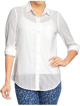 Women's Striped-Dobby Shirts - Bright White