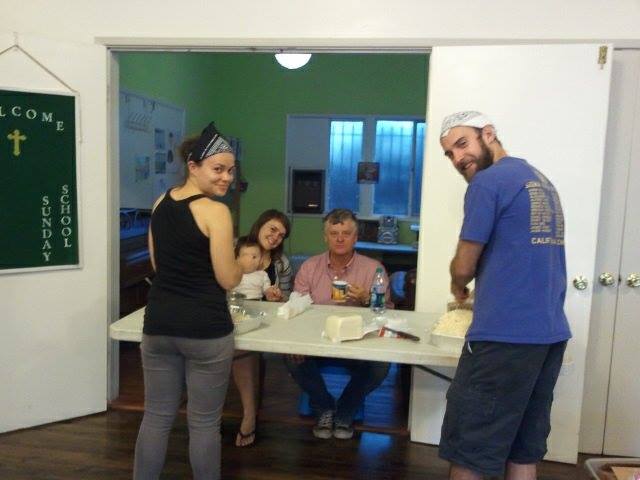 Here are helpers Liz, Ron, Rachael, Luna, Ray on cheese grating duty: