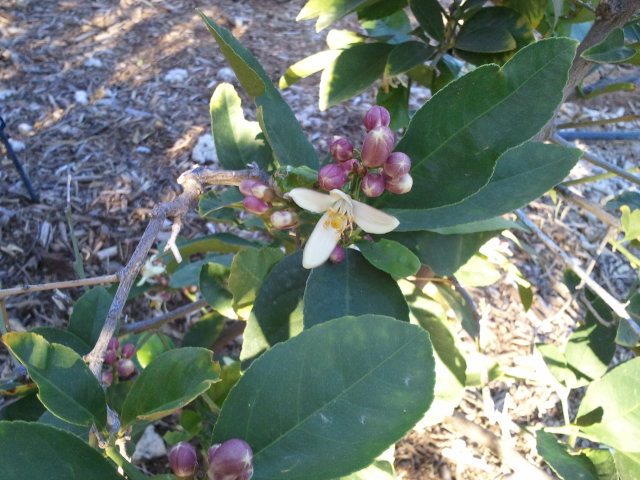 We have blossoms and a green orange on the same tree. One growing season right after another.