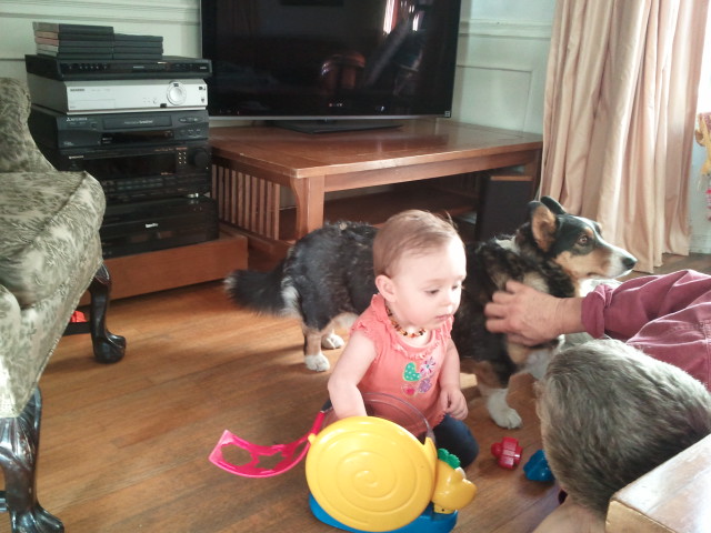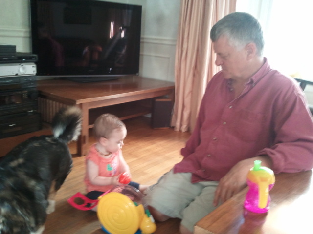 Luna and Grandpa (and Cordie) playing outside in our back driveway.