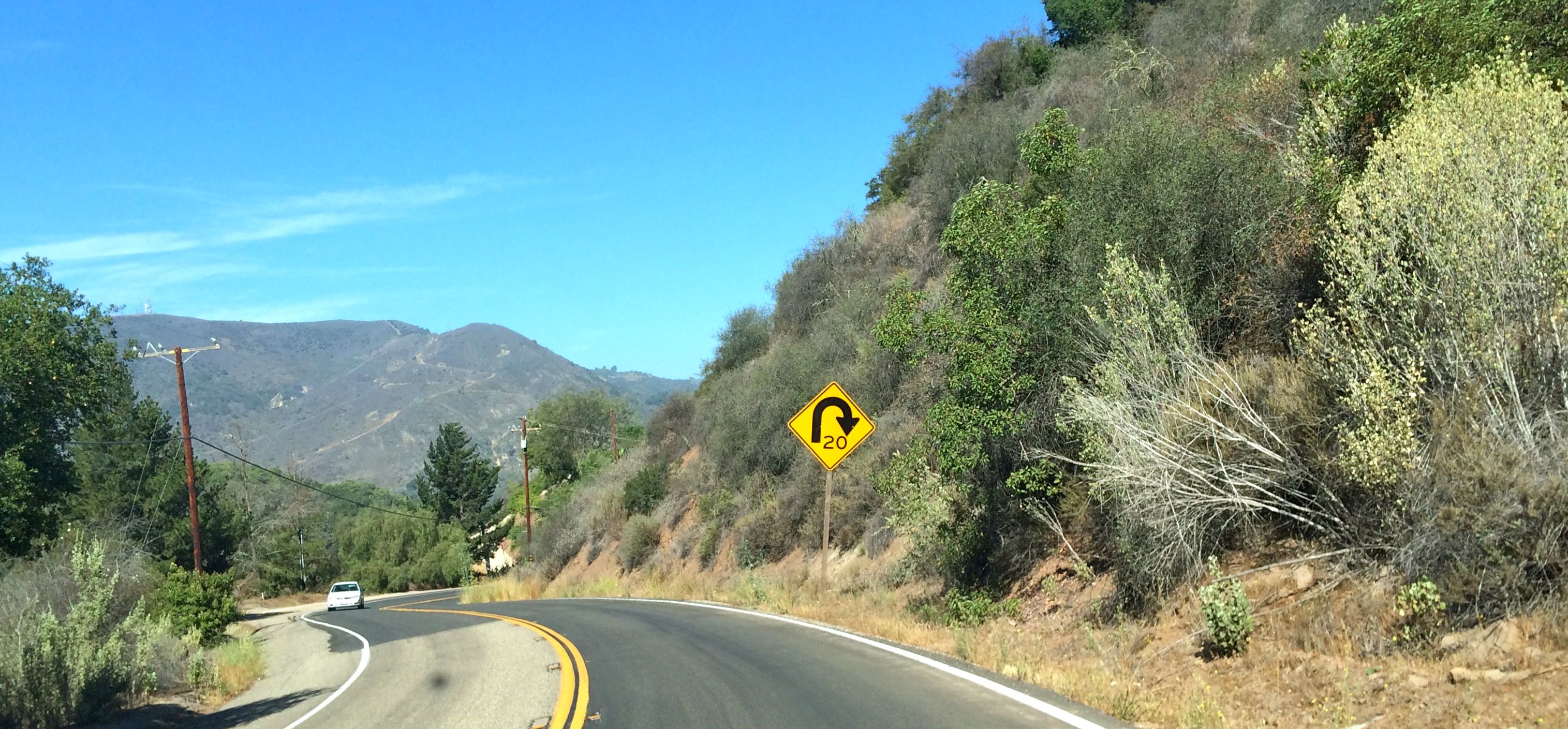 How blue is that sky! The roads looked straight and then…zowie, what a turn.