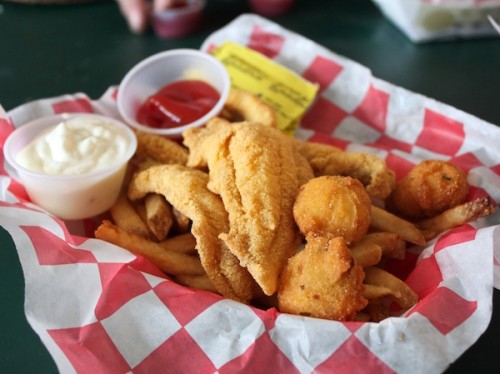 After church, we headed across the river to a catfish place called Windy’s. It’s a requirement when visiting here to eat catfish and barbecue at least once while here. Also, Mexican food. Windy’s served up some decent catfish, hush puppies and cole slaw, along with green tomato relish. The other nice thing about the location is that you drive right by Lake Texoma, which looked quite pretty today. So, we have a little foray into Oklahoma to get that prized catfish.