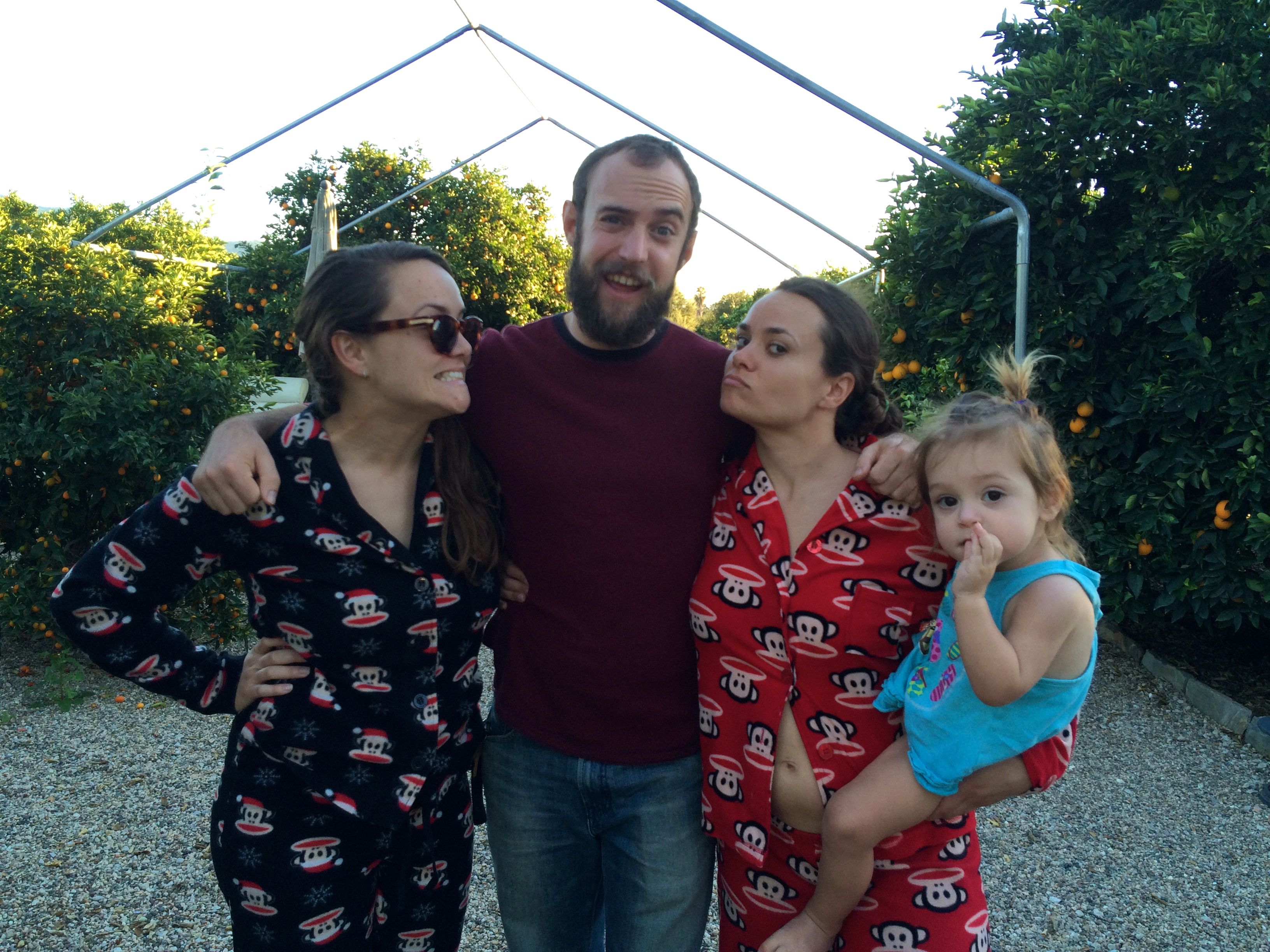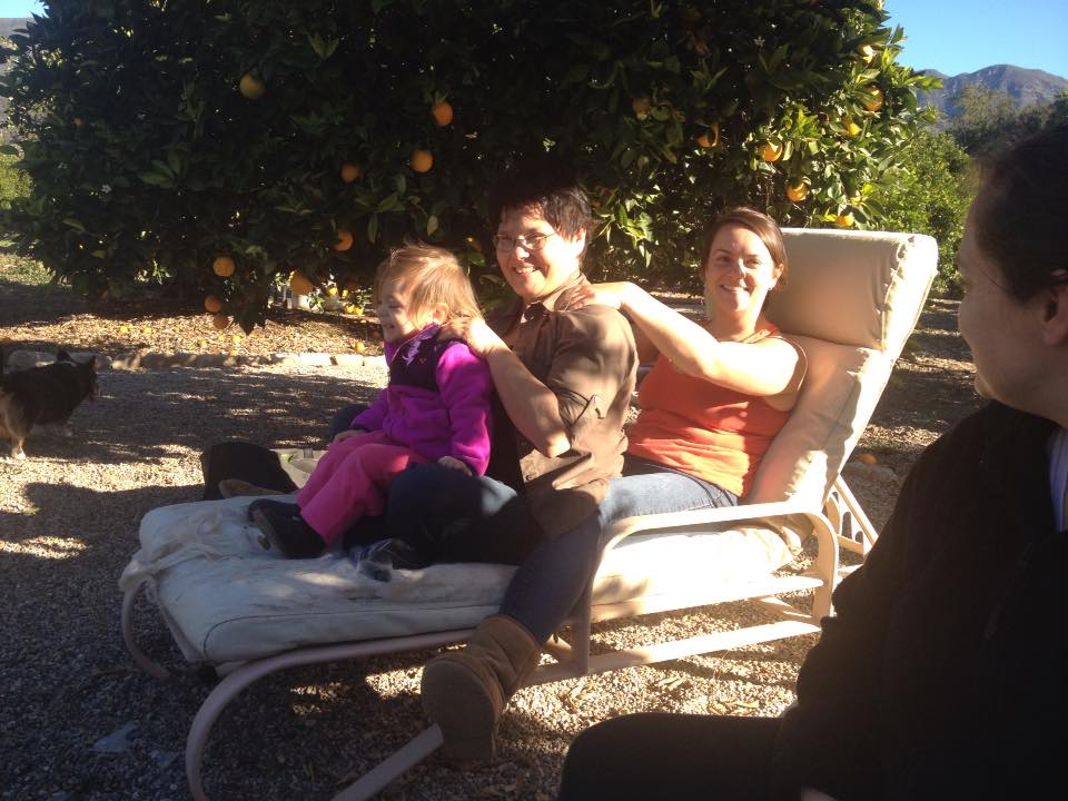 I have spent the last two days at our orange grove in Ojai with my family celebrating daughter Liz’s 29th birthday and my upcoming (next Wednesday) 62nd birthday. Ray and I arrived on Friday afternoon and returned today (Sunday) late afternoon. Our time with family, first at Surfers’ Beach in Ventura for several hours on Saturday, at the orange grove, then on a hike at the nearby Nature Conservancy was filled with lots of playtime with granddaughter Luna, and lots of talk and laughter with my three grown daughters, my son-in-law, Liz’s boyfriend, and Ray.