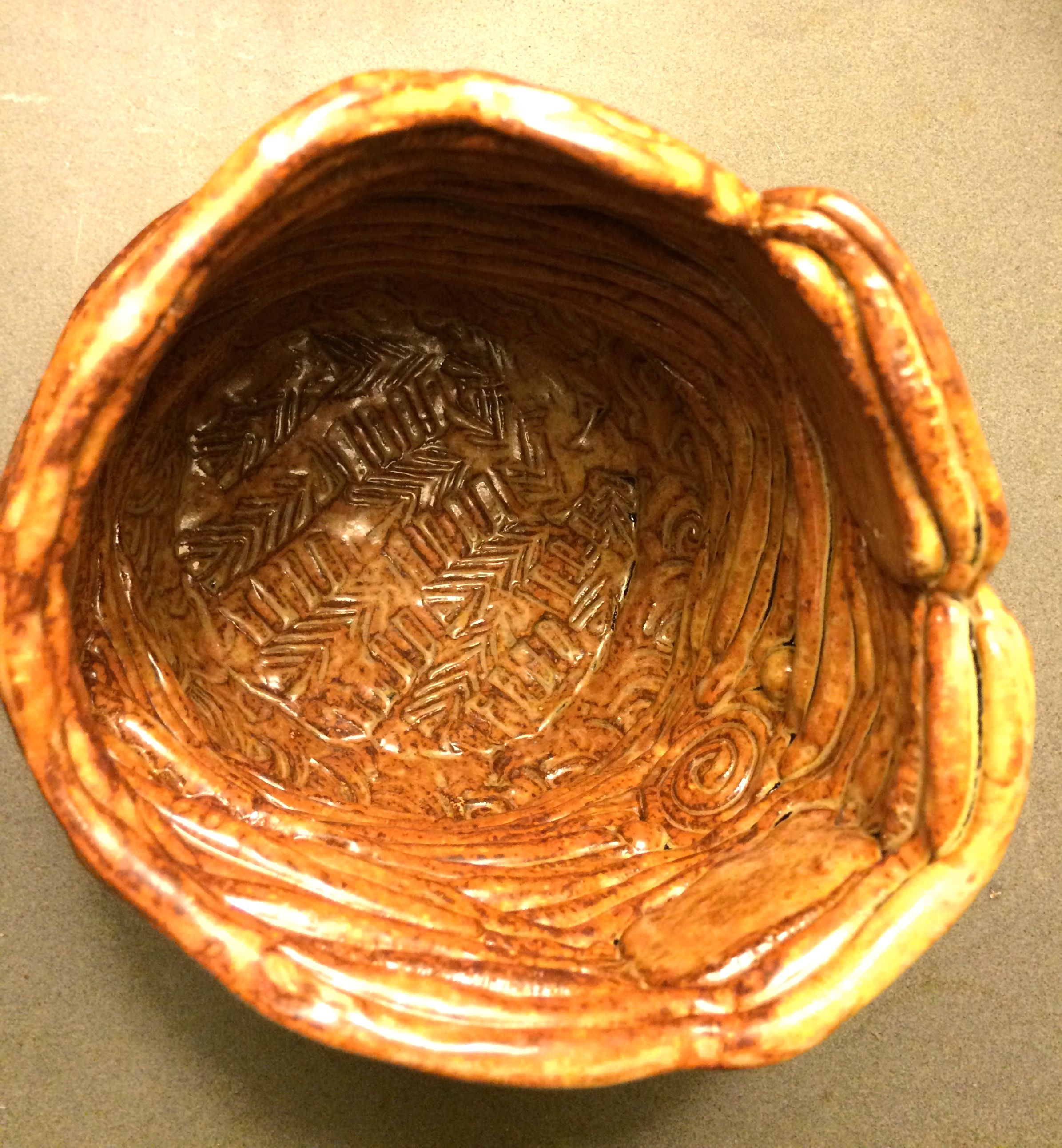 Awesome! I like how you decorated even the inside of the coiled pot and the detail on the outside of the slab pot is fabulous. What will you do with all your creations? Sounds like a lot of fun. ❤ ❤