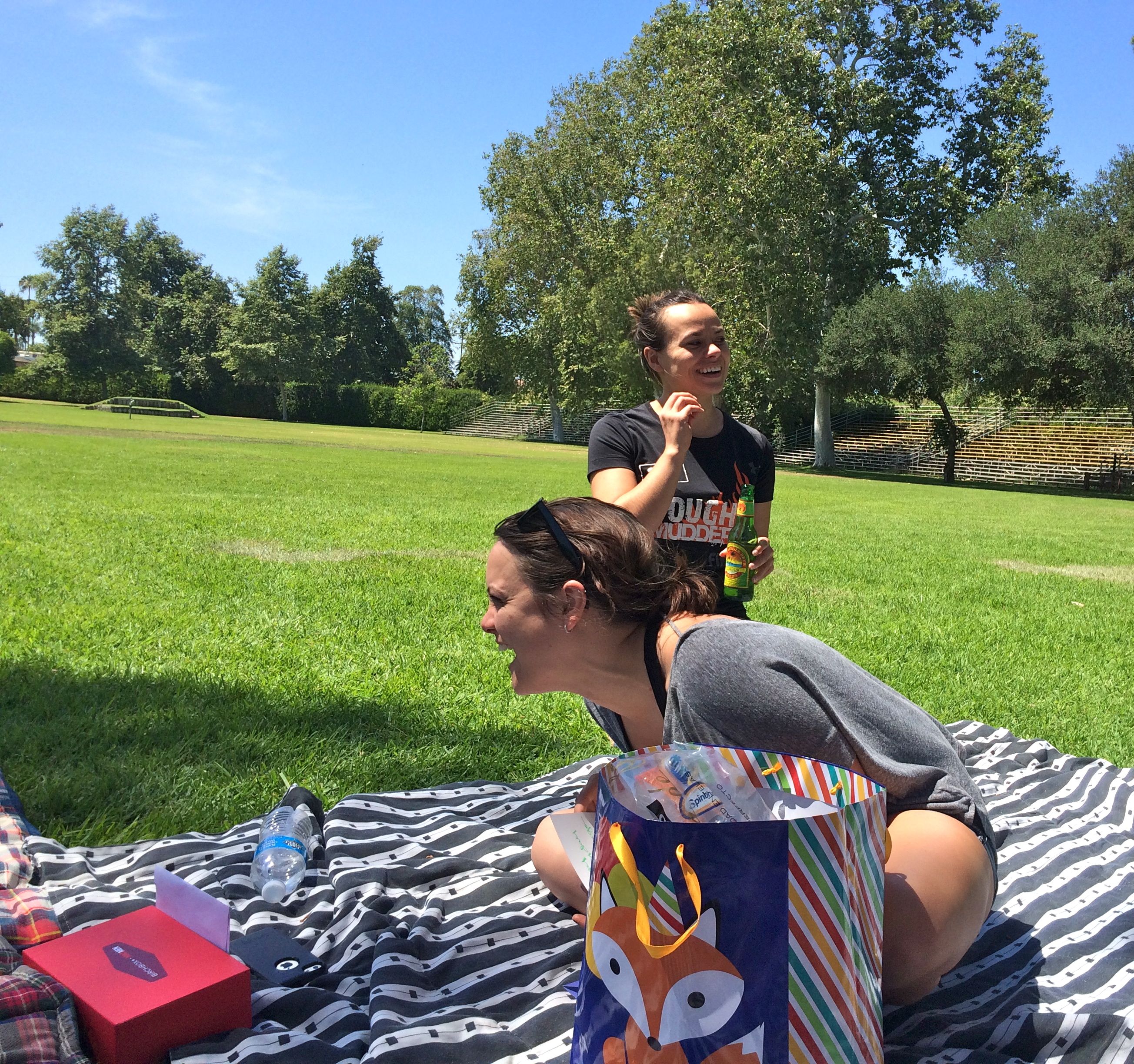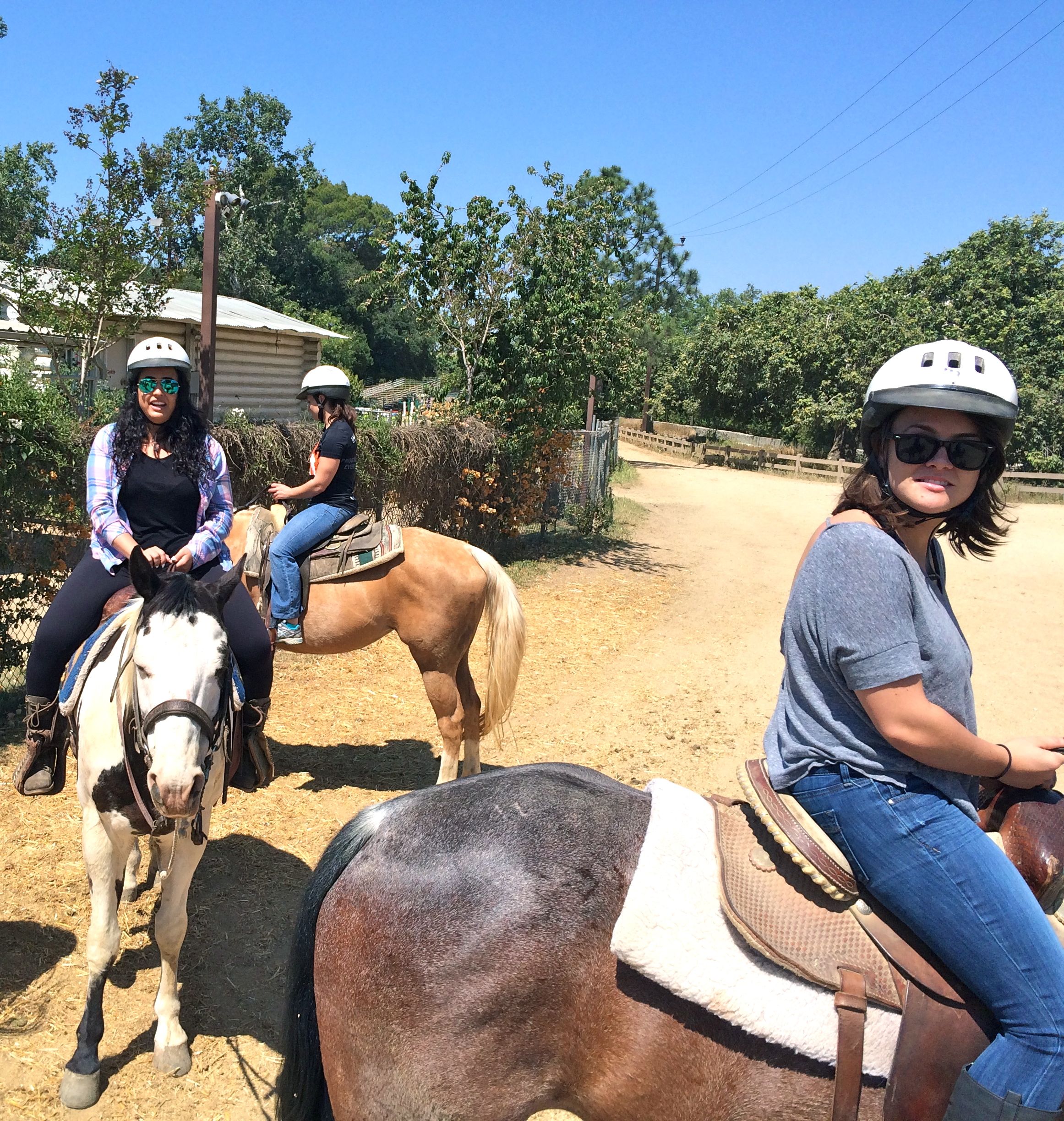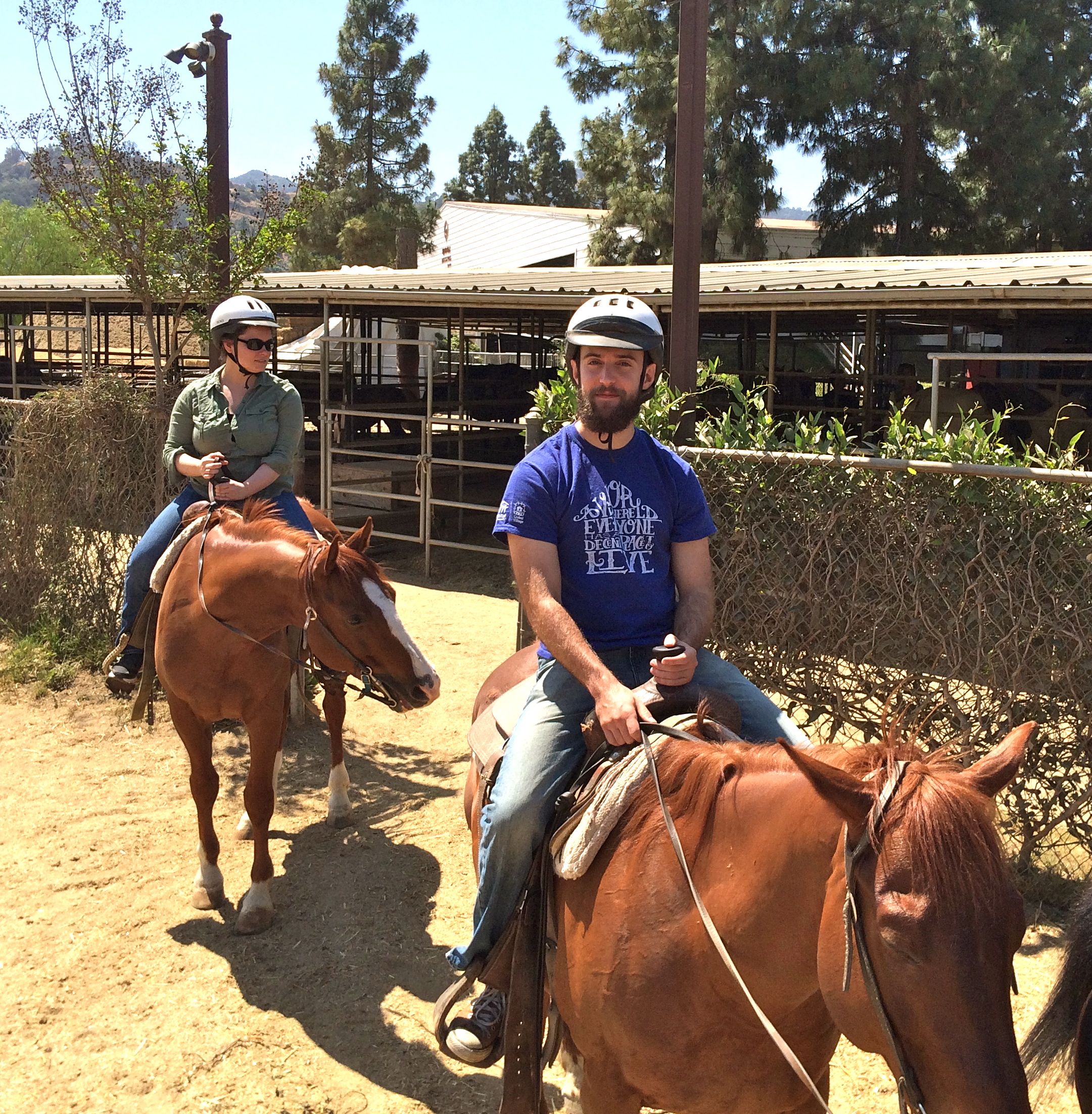 Today we went to the Griffith Park Horse Rentals and went on a trail ride to celebrate Rachael’s birthday. Luna had her own personal ride with the aid of her Daddy and her Grandpa. After the ride, we had a picnic in a big green field near the stables. The weather was perfect and the family was relaxed and happy.