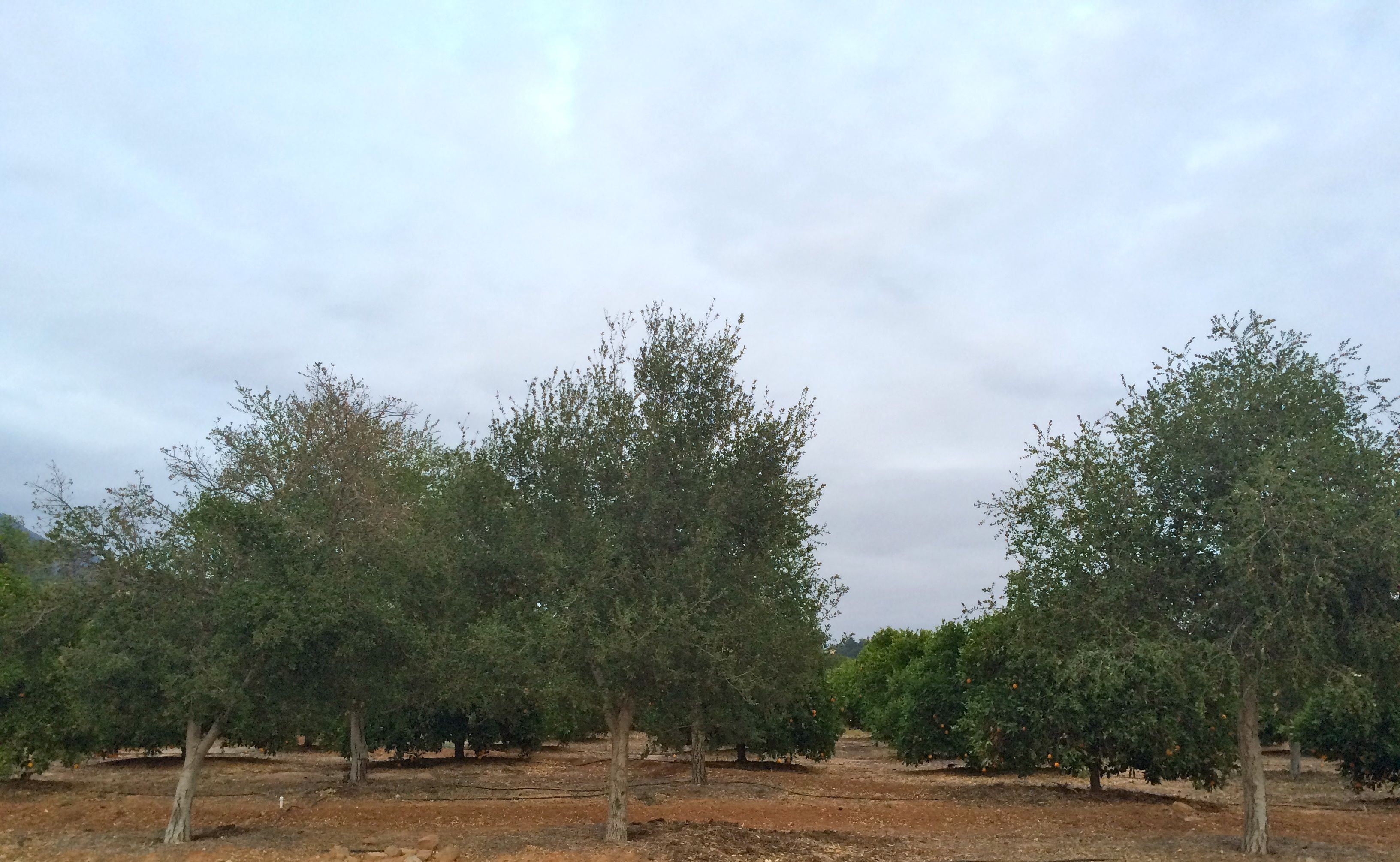 A Different Angle of the Orange Grove with a Few of the Oaks We have Planted