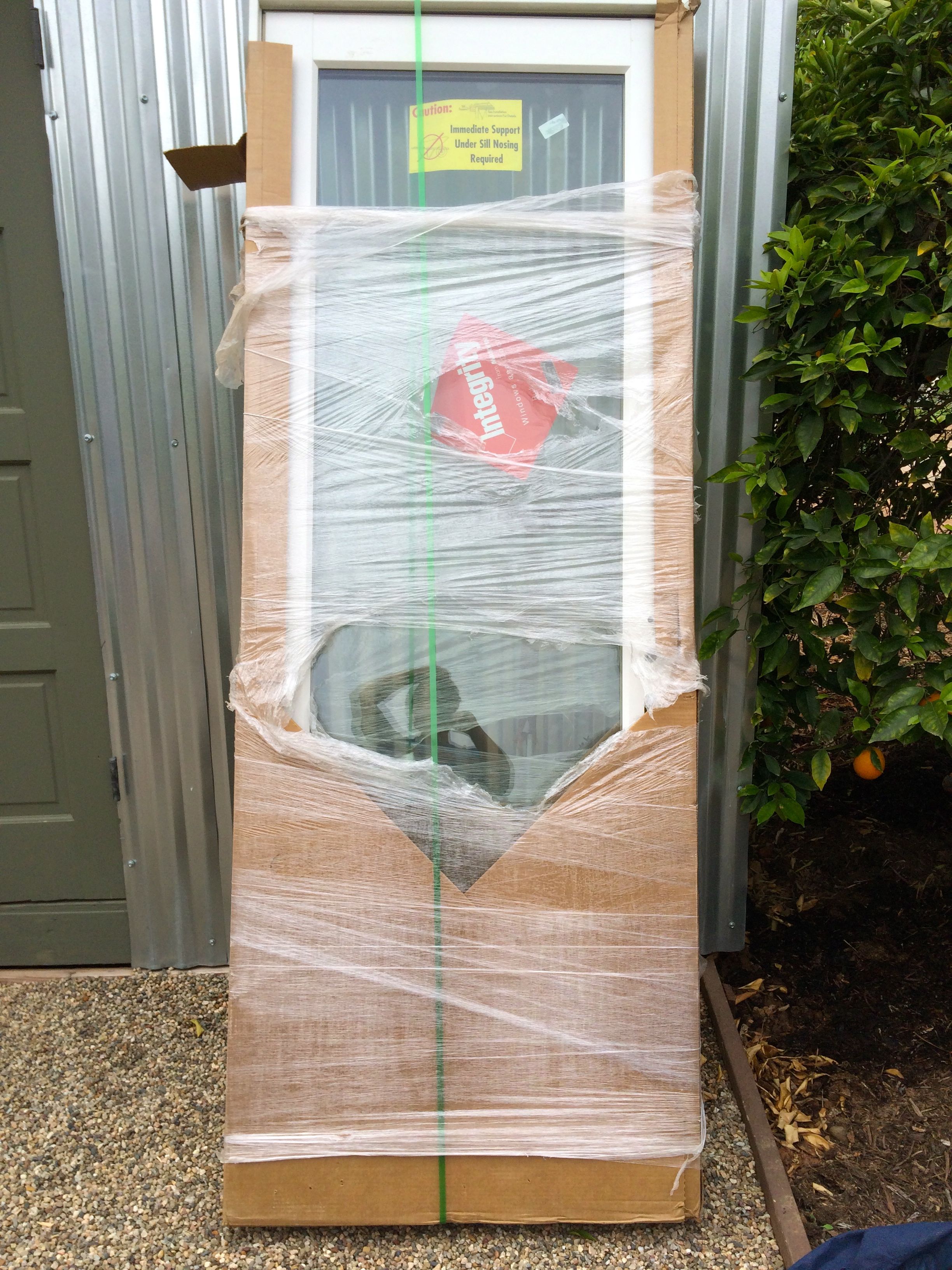 Here is the smaller window that will be on the east (front) wall of the kitchen next to the glass front door. We have been storing this just for this project.