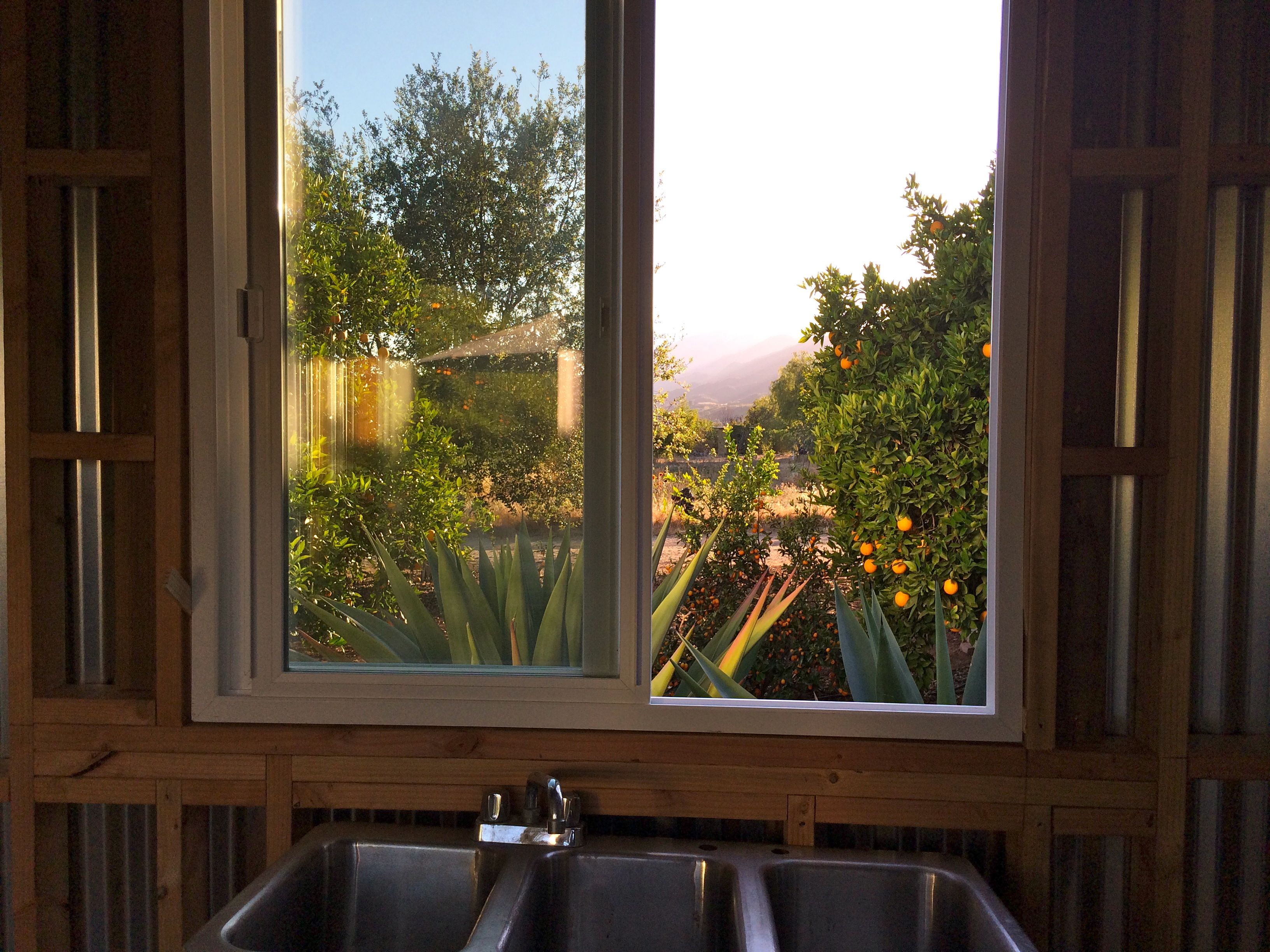 Looking out back window over sink