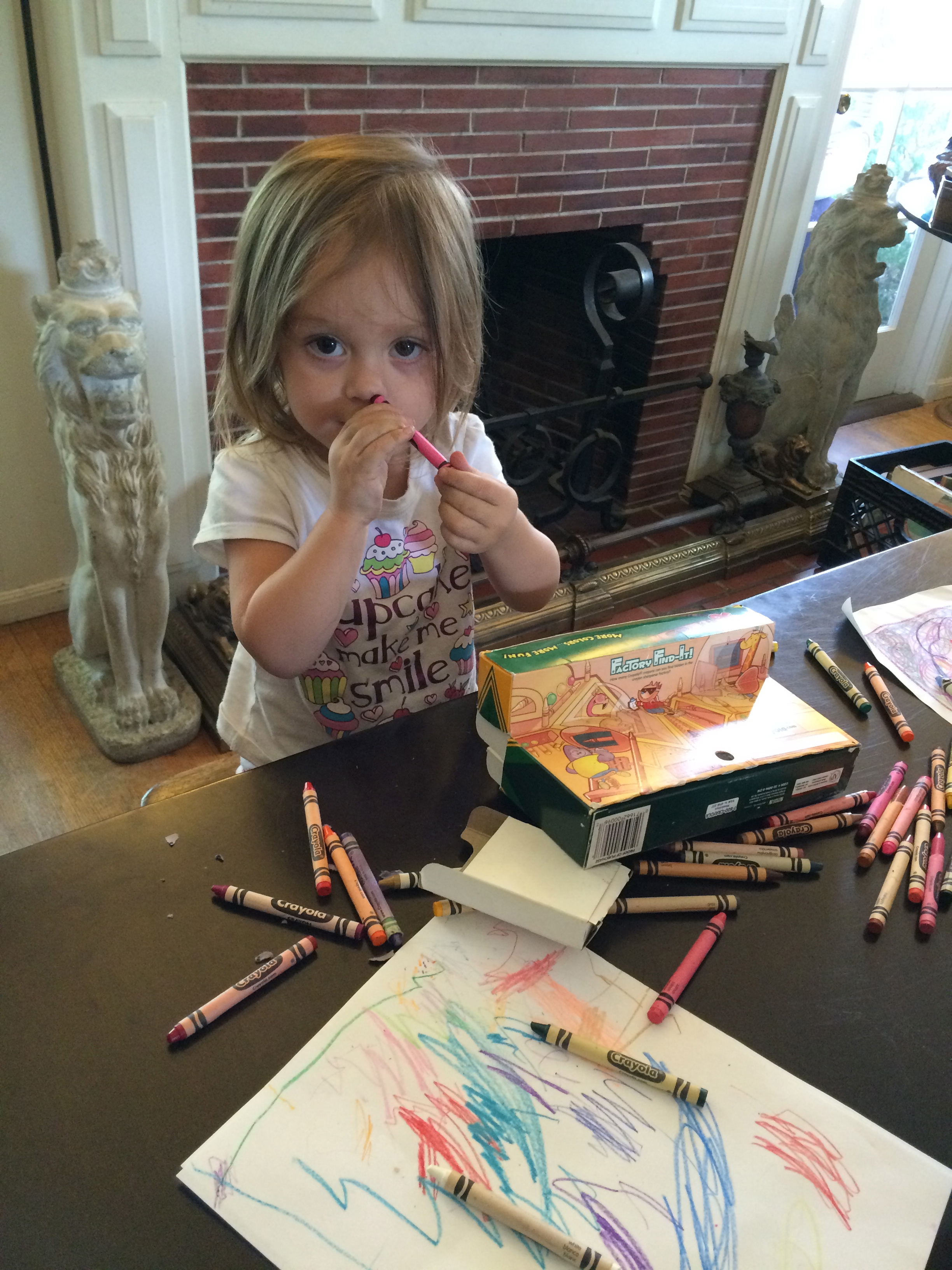 Back inside for a snack – and then lots of drawing with crayons and colored pencils.