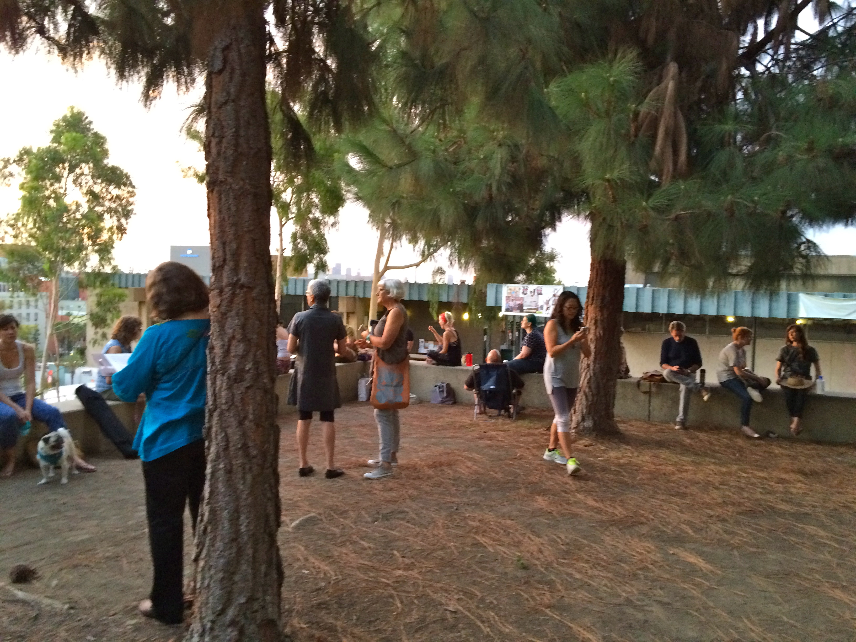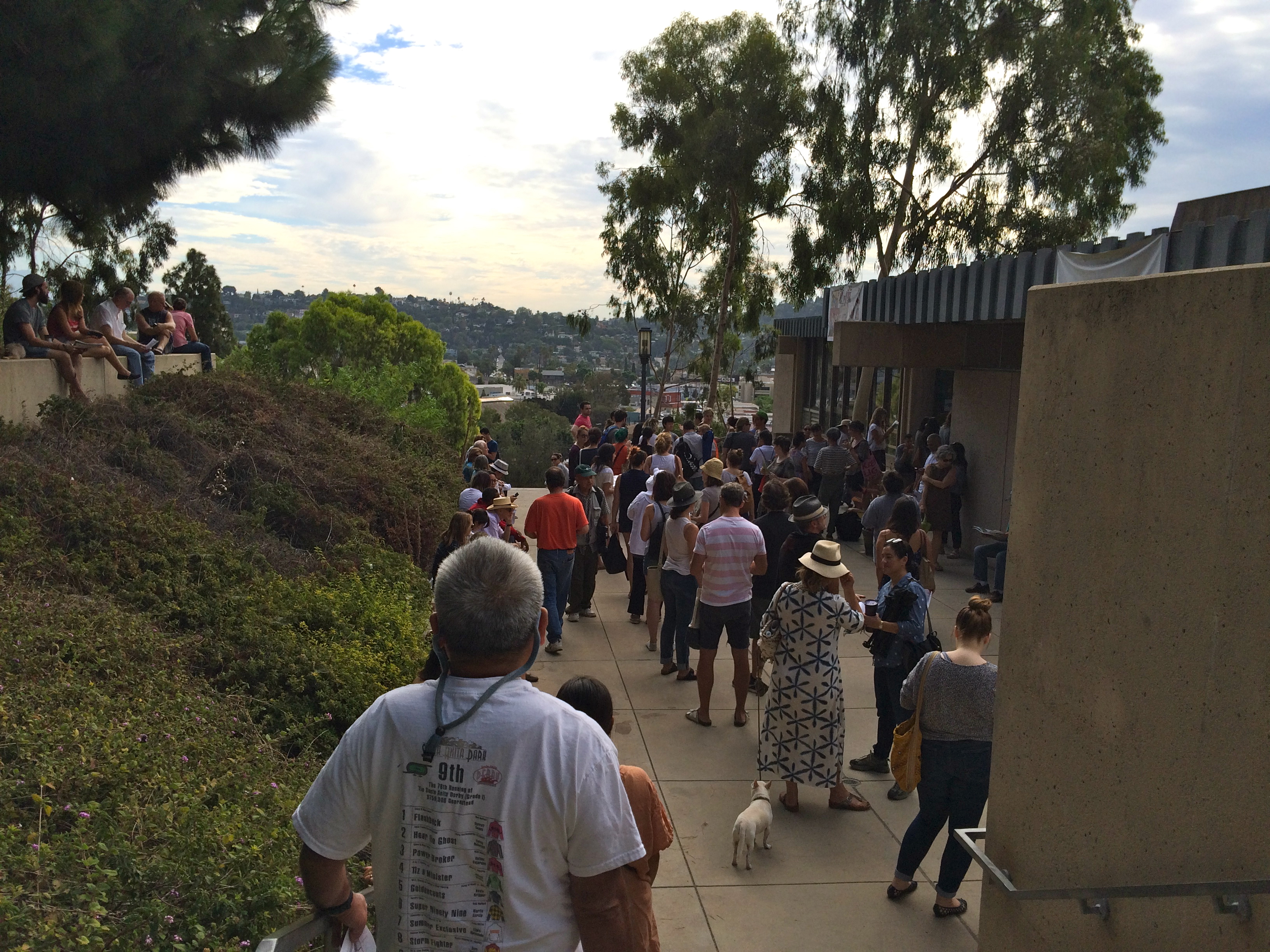 I was up bright and early to stand in line at the Barnsdall Art Center so that I could sign up for a ceramics class. Liz and Ron were there, too. Liz, because we’re taking the class to together, and Ron as a stand-in for Ray who needed to go work at the homeless breakfast. (I took a break today.) The sun was just coming up, 6:30 am, and there were already 100 people in line. I asked the first person how long he had been there. At first he said, “2 am,” then smiled and said, “The truth is since 5.”