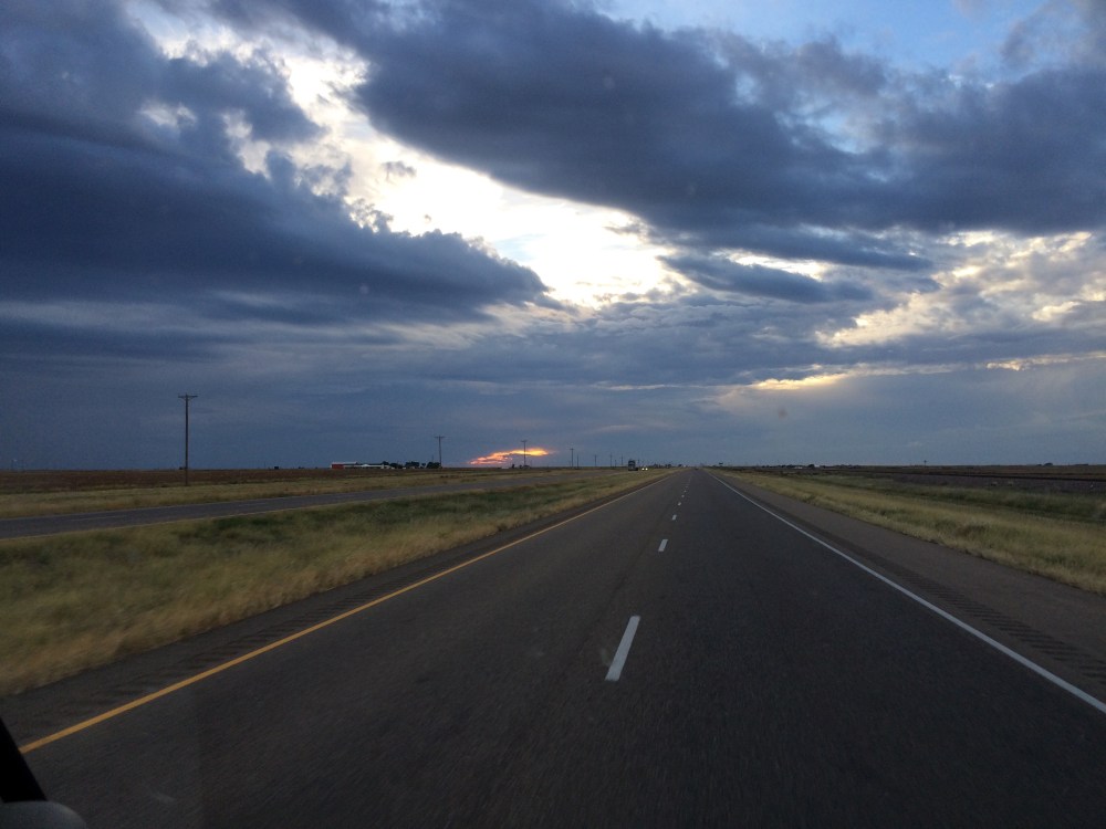 Ray and I are in our van on Interstate 40 in the middle of a rainstorm. We are about sixty miles from Tucumcari, New Mexico and have already pulled over once due to high winds. We are pulling a nineteen foot trailer with our fifteen passenger van so we don’t want to take many chances, especially on a dark, rainy night. We are heading back to California after a brief trip to Texas to take care of business there.