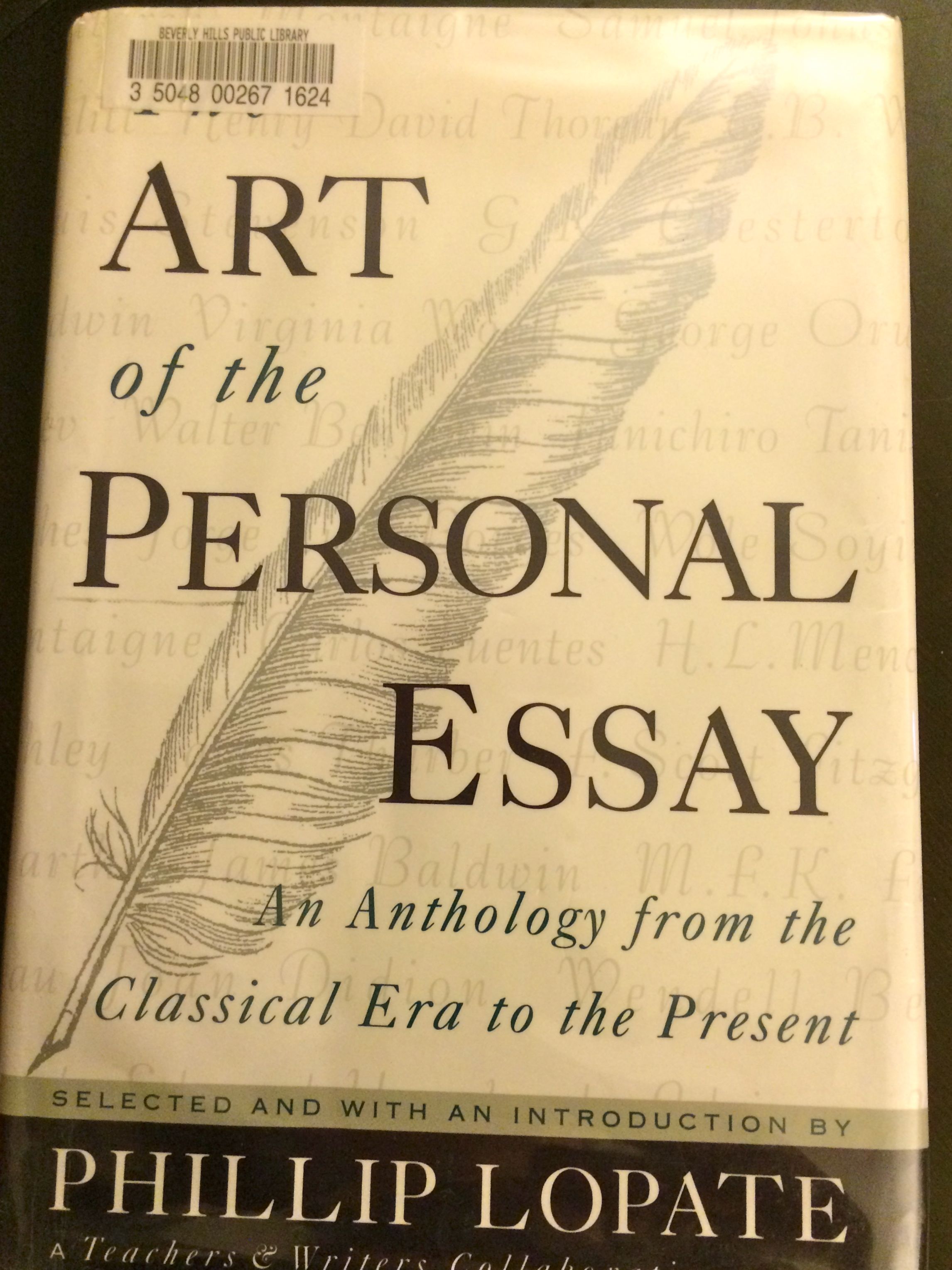 I love the form of the personal essay and am looking forward to reading many of these. Also, there is an introduction from Phillip Lopate that covers lots of issues concerning personal essays, such as “egotism” and “cheek and irony.”