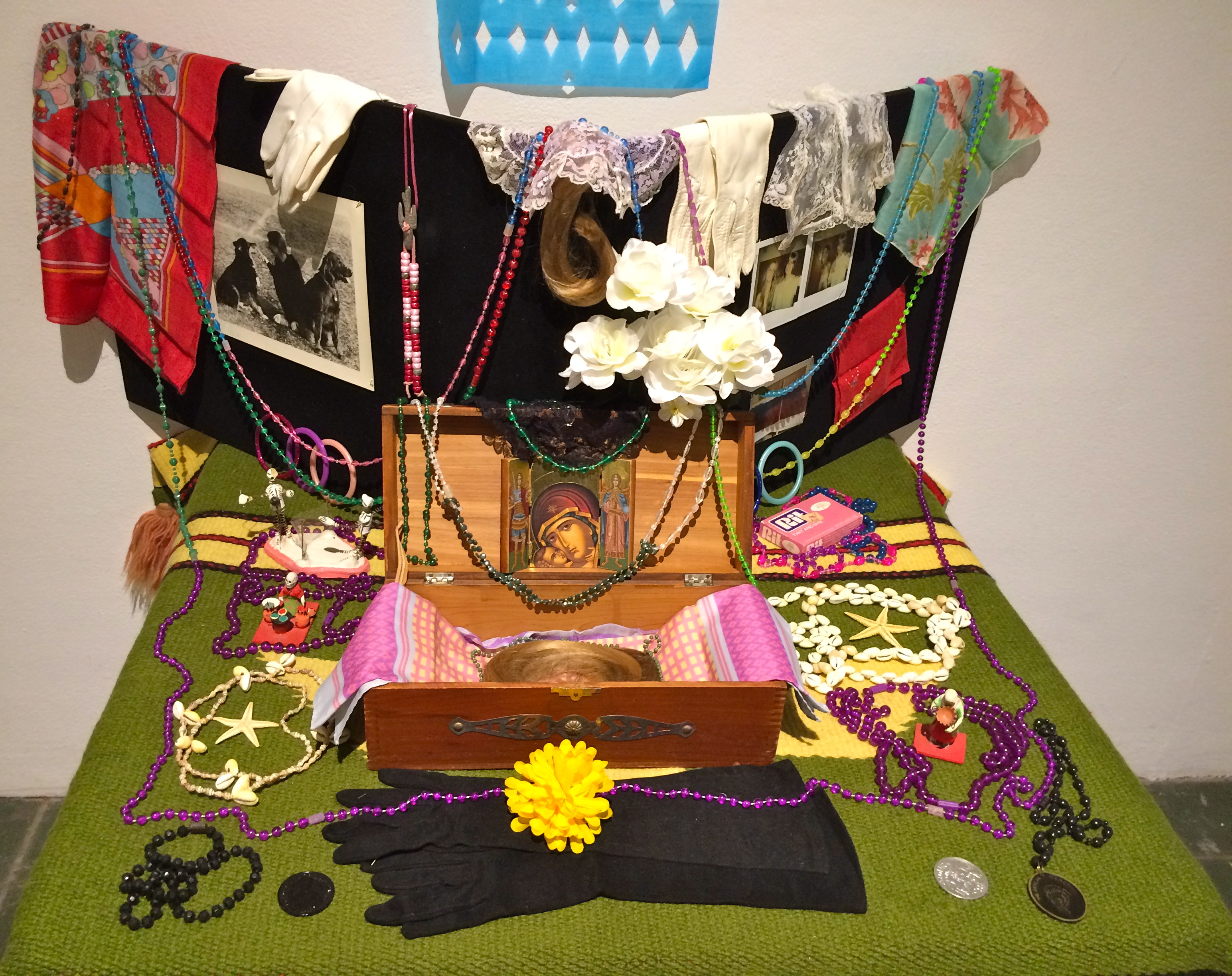 After I had everything placed on the altar – Mardi Gras beads, shell necklaces, bangles, several different types of gloves, a box with her hair, a couple of pictures of Patricia, a box of Ritz dye (she loved to dye things) and two lacy head covers that she and I routinely wore to church growing up – I stepped back to survey my handiwork. That’s when I felt the catch in my throat and my eyes fill with tears. The altar honored my sweet childhood friend who I have loved my entire life – during her life and now after it has ended. I was so happy to be reconnected with her for a brief time through this moving Mexican ritual. I could instantly see how healing this commemoration can be. There is reconnection and closure. Very healing, indeed.