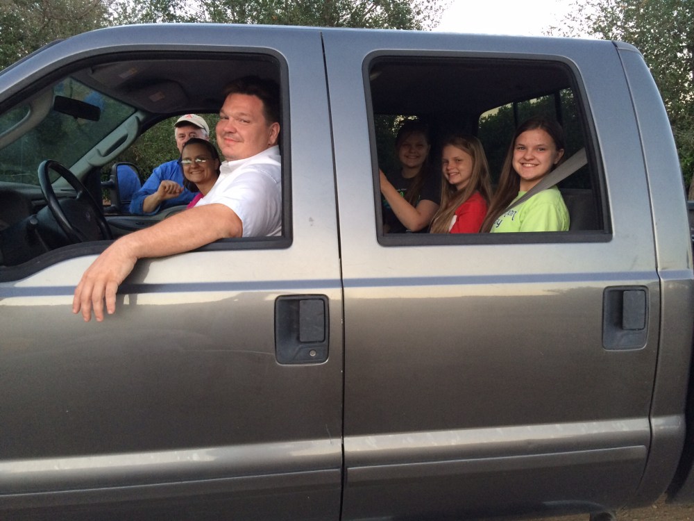 This is Scott and Amy Ellis and their three girls, the same people who were kind enough to bring out the Airstream from Texas for us last summer. They again are making a vacation of the trip. I believe they have already visited Carlsbad Caverns and the Biosphere on this trip. We are grateful because Scott is one of the few people we know who is willing to pull a 35 foot trailer half way across the U.S. That makes it great for us and , hopefully, a memorable family vacation for them.