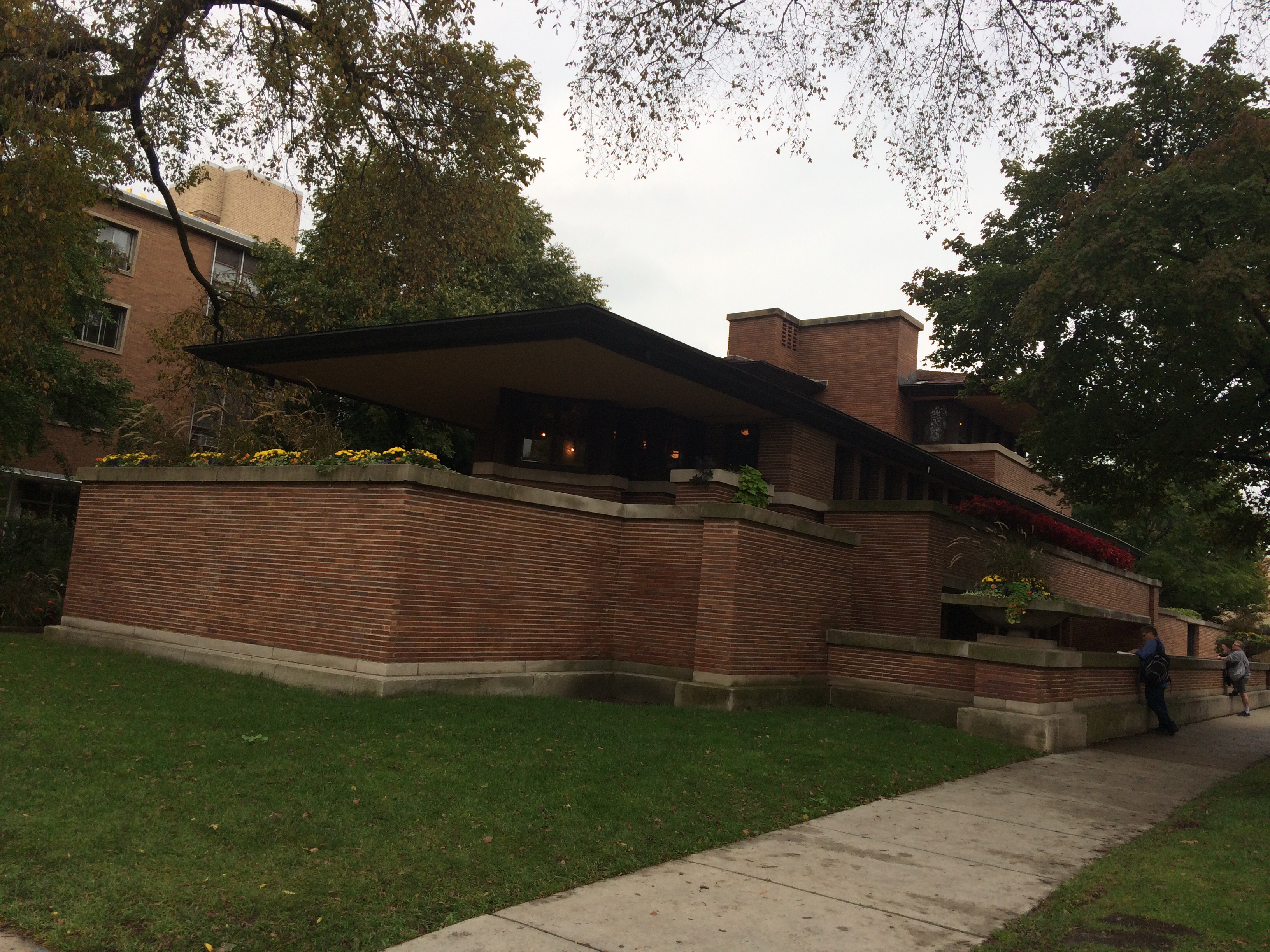 Yesterday we went to about fifteen buildings in downtown Chicago, and today we saw homes in Oak Park (including Frank Lloyd Wright’s home and workshop and Hemingway’s birthplace), toured several on Prairie Avenue, once the most exclusive street in Chicago, and also saw the Robie House, which is near the University of Chicago campus. Needless to say, we are two pooped pups. Today alone my step counter indicates we have walked eight miles.