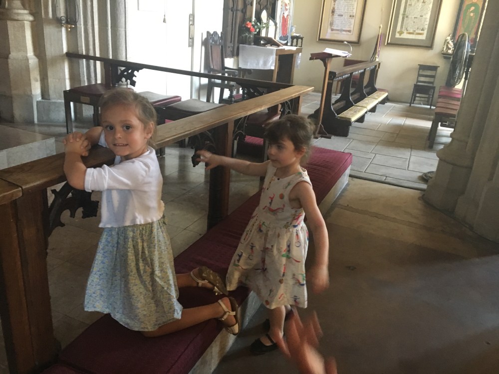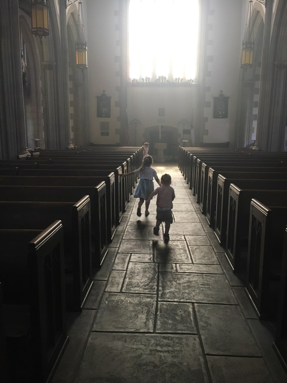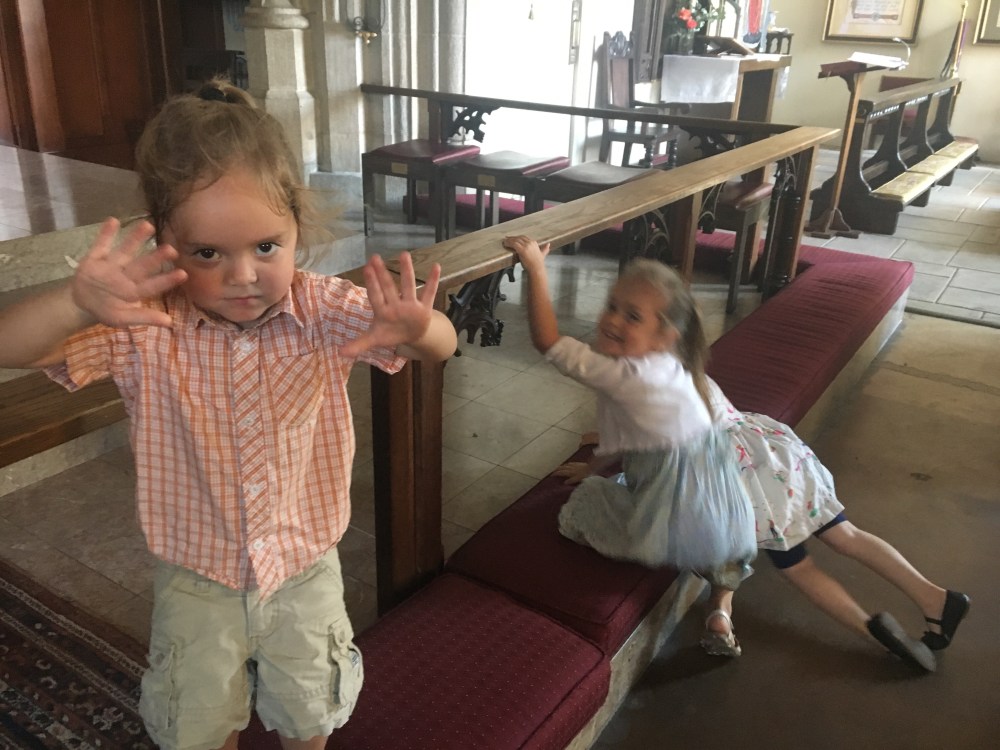 Luna, Nico and their new friend Vivian playing after church today at St.Thomas the Apostle, Hollywood.