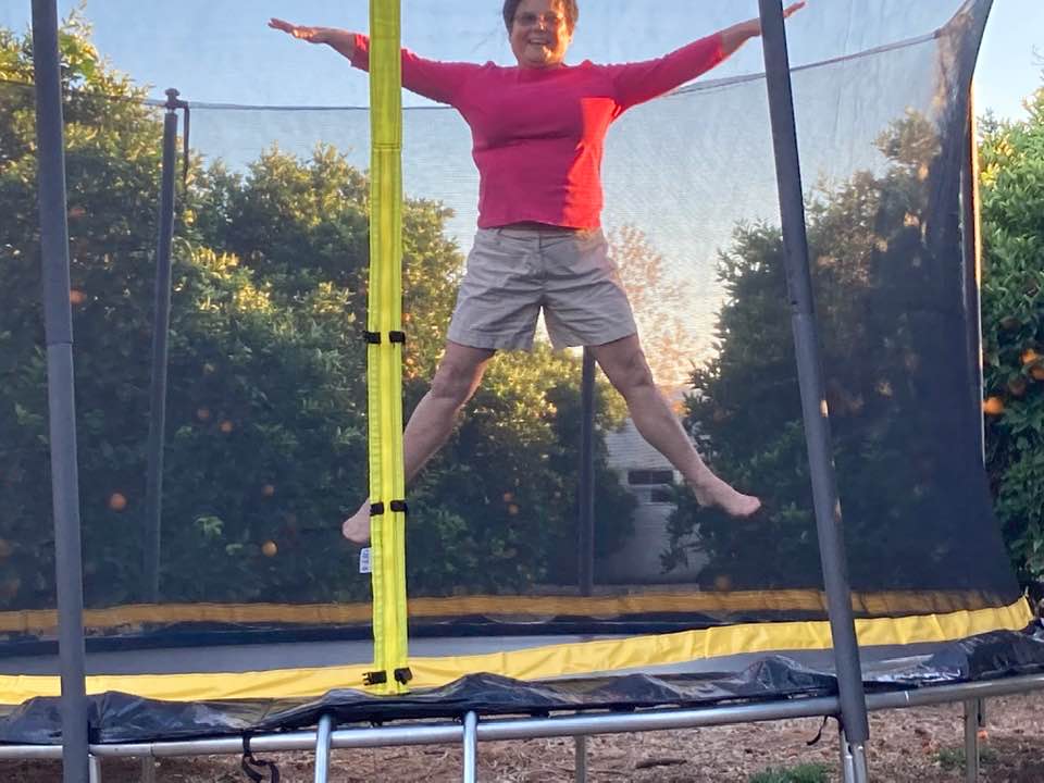 That trampoline is definitely a great addition to the orange grove. I bounced until I was breathing hard and my heart rate was up.