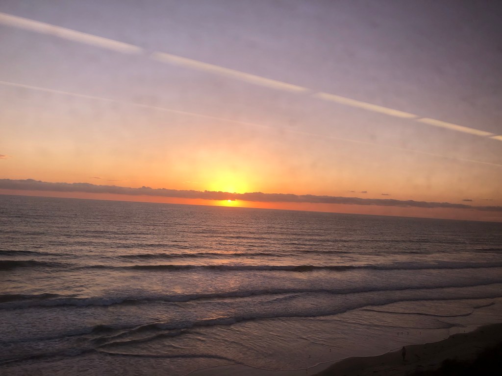 We walked across the Mexican border. Everyone wore masks. We then took a trolley to the Amtrak station in San Diego and are now almost to LA. This is our first time for this adventure. Overall, quite easy.