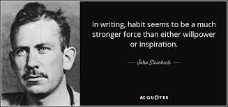 I read a piece the other day about John Steinbeck’s insecurities about The Grapes of Wrath. He had no idea if the book was any good or not; wasn’t sure it would find a market at all. However, he felt compelled to write it and forced himself to work every day to get it done. He kept a journal while he was writing the novel in which he poured out his worries and fears and thoughts. I have found the journal to be quite comforting since he writes of all the feelings every writer I know – including me – experiences. His big contention was just sit down and do the work. He also has this famous quote, which makes me laugh: “The writer must believe that what he is doing is the most important thing in the world. And he must hold to this illusion even when he knows it is not true.” Clearly, Steinbeck had an excellent sense of humor.