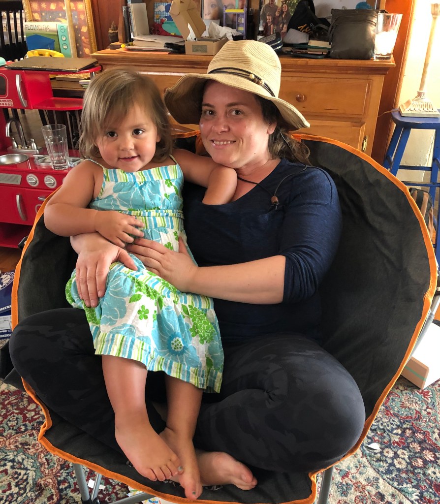 Here are a few photos of today. Sarah requested a sunhat and a camping chair for her birthday. She also received all sorts of little gifts and a couple of bigger gifts from Gregorio. So, when you see Sarah sitting in a camping chair in her living room with an outdoor sun hat on, you’ll have an explanation for that.