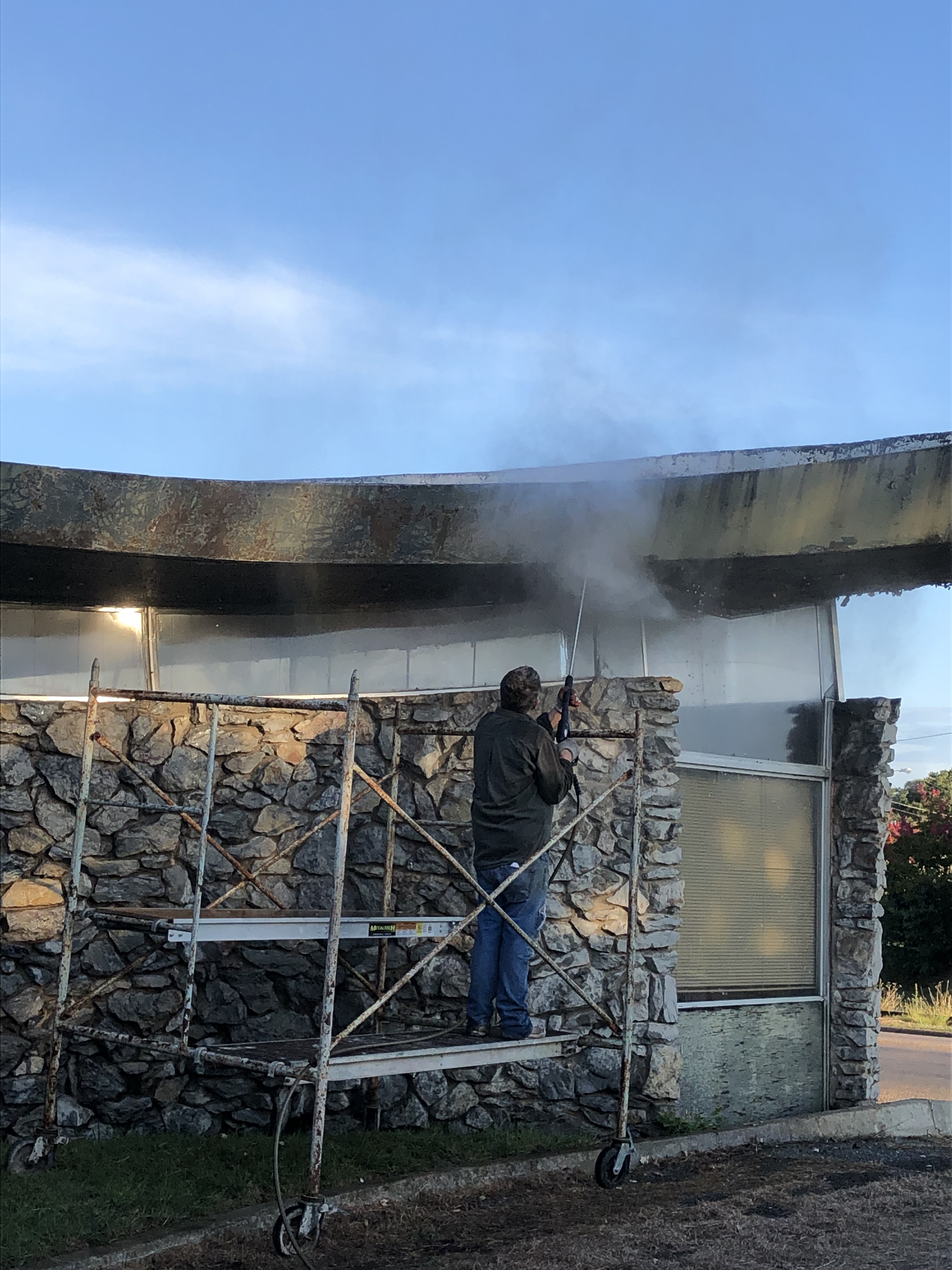 I am tired tonight. Tired enough that I believe I could lay my head down on my writing table and go straight to sleep. Over the past several days, Ray and I have been tackling lots of the toughest spots we have here in Texas. Hauling lots of furniture and boxes out of our barn to sort; clearing out an open trailer filled with discarded bricks from a chimney up on our roof; heading down to our nearby mid-century building at 7 this morning to power spray the peeling paint off the edges of the concrete roof in preparation for our friend, Darrah Dunn, to apply a sealant that we hope will bring new life to a historically significant building here in our small Texas town.