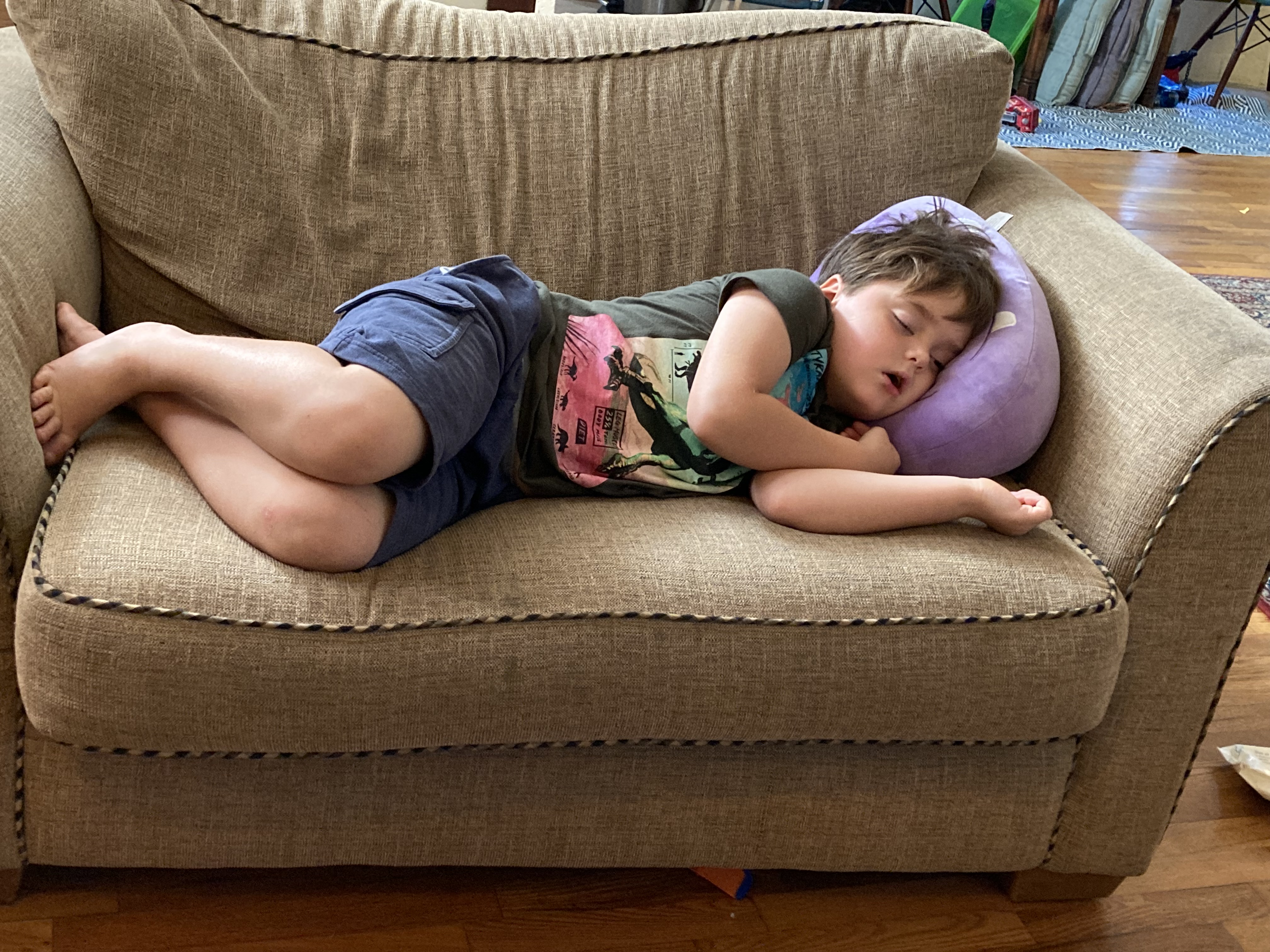 Below I’m including a photo of Nico that Sarah sent about an hour ago. It doesn’t take much imagination to see that this usually rambunctious five-year-old is a bit under the weather. Poor little fella.