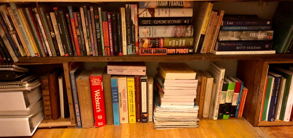 I have also placed at eye level many of the books that over the years have been special to me. These include my writing mentor John Rechy’s novels and non-fiction books, along with those by Joan Didion, Toni Morrison, John Steinbeck, Wallace Stegner, Zora Neal Hurston, Larry McMurtry, P.D. James, Virginia Woolf, Eudora Welty, and on and on and on.