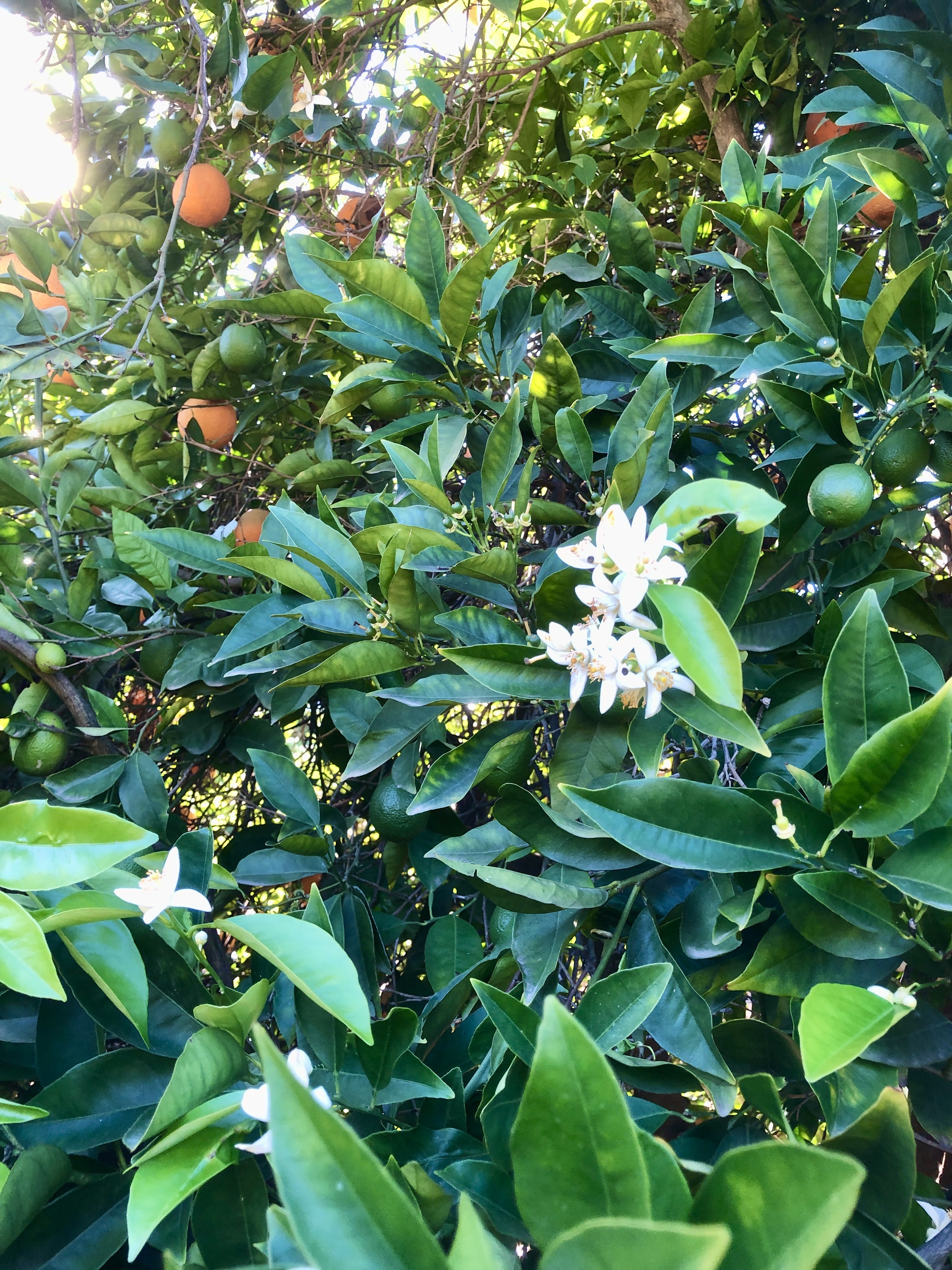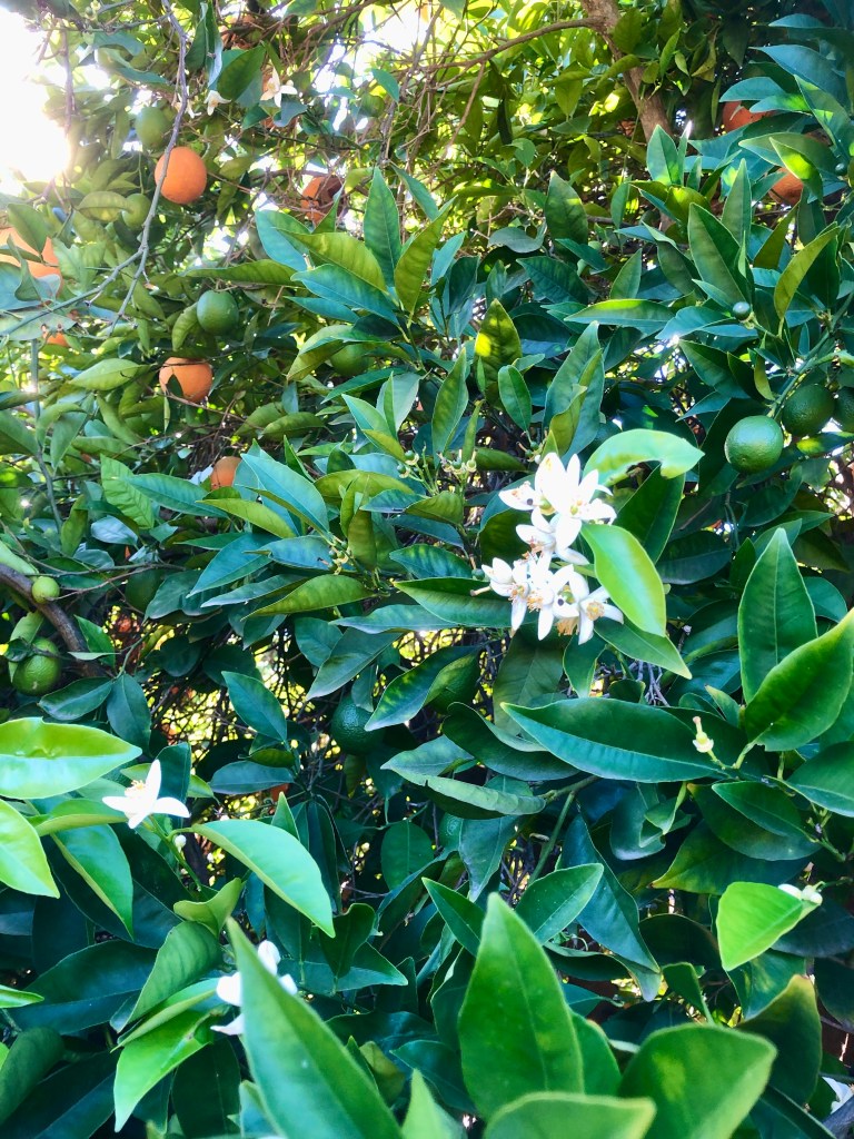 While it is down to 37 degrees at night this week, the temperature during the day here in Ojai has been a lovely 65. We are working here for several days so I’ve had the benefit of enjoying blue skies and the quiet and peacefulness that prevails at the orange grove. Today, I walked around the grove and took a few photos to share with you tonight. Being here gives both Ray and me the chance to breathe deep, relax our shoulders, and enjoy being outdoors. Though we have our trusty Airstream, during the day, we are mostly outside, working, walking, or just enjoying the day. Here are a few examples of the flora that abounds at the grove. I hope you enjoy them!