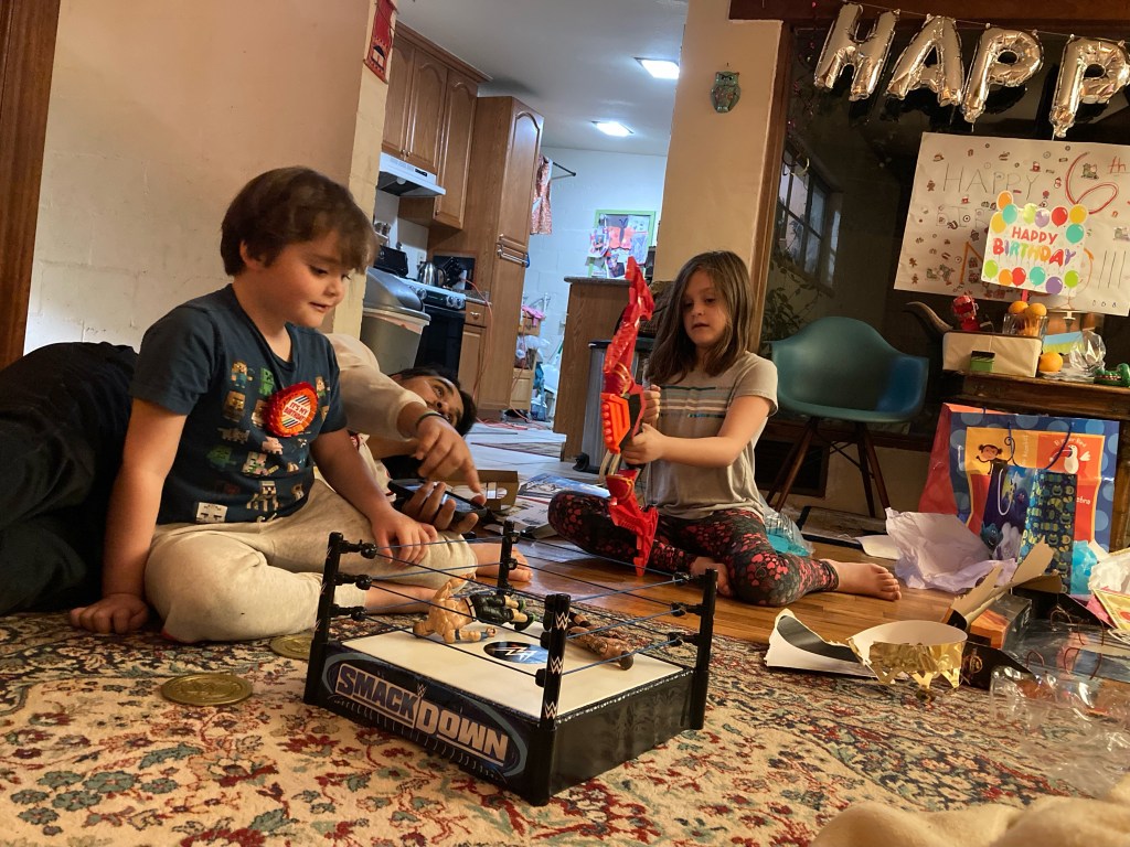 Nico is such a sweet boy. He requested that his mom get one present each for his sisters so they would also have gifts. This is pretty much his personality in a nutshell. Very protective of his sisters and sensitive to what’s happening to the people around him. He is all-boy in terms of playing soccer, running around with lots of energy, eating with enthusiasm, and loving everything related to superheroes and dinosaurs. He also has a gentle side. When I asked him what fruit toppings he wanted on a slice of cake, he said, “I don’t care, Grandma. Just make it beautiful.”