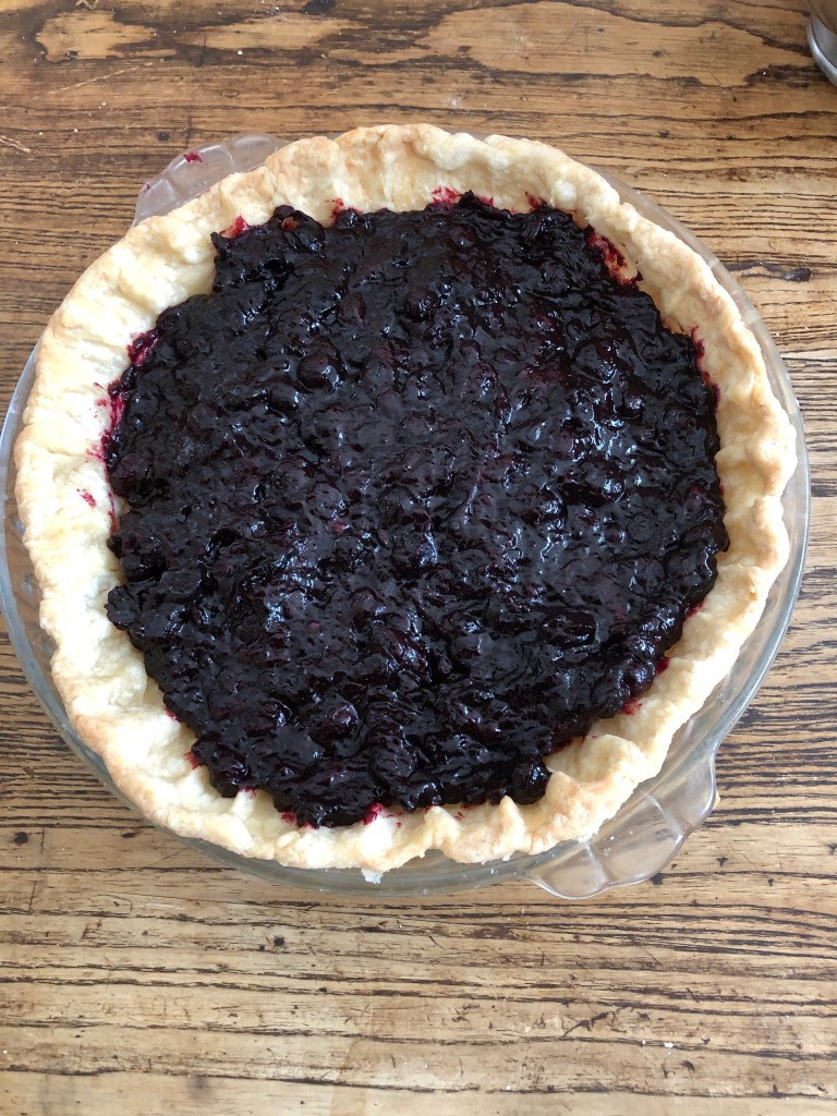 Let everything cool, then pour the cream cheese mixture into the pie shell. Top with the blueberry compote. If the cream cheese mixture is not fully set, then place it in the freezer for around 30 minutes before serving.