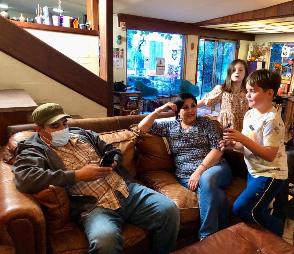 Gregorio with his mom, two first cousins, nephew, his first cousin’s mother-in-law, plus Sarah and the kids
