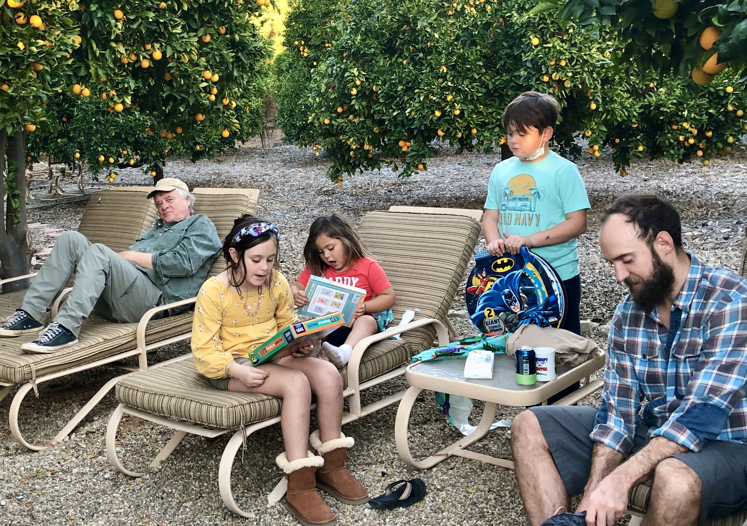 Nico with his sisters, grandpa, and uncle over Christmas at the orange grove