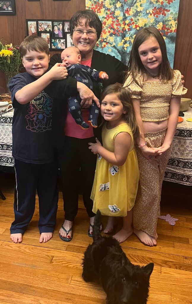 Me with my four grandkids and one granddog