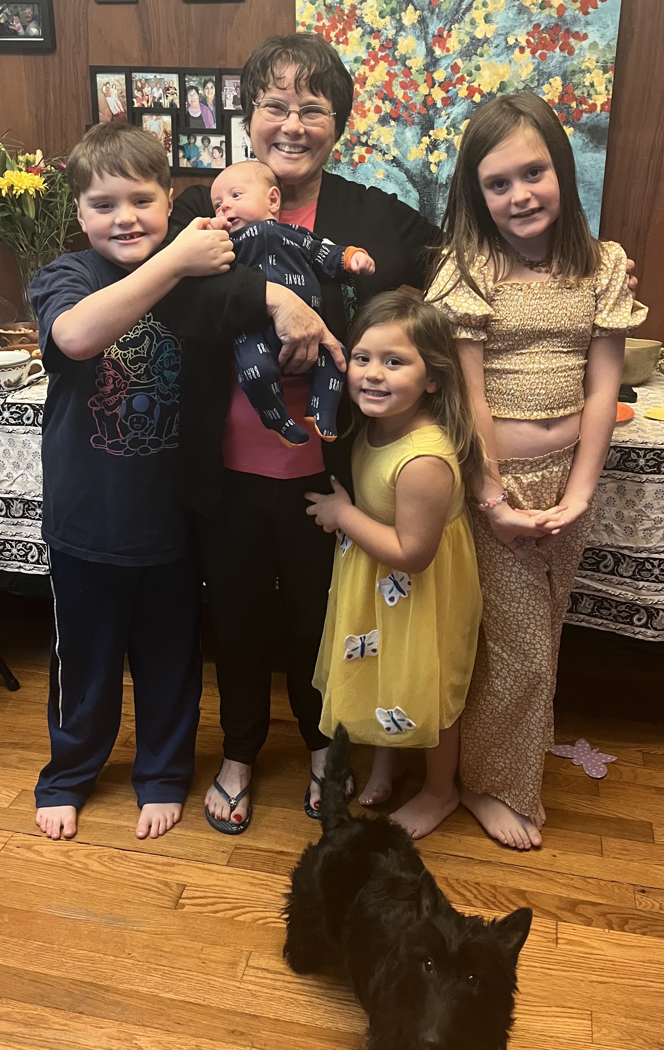 Me with my four grandkids and one granddog