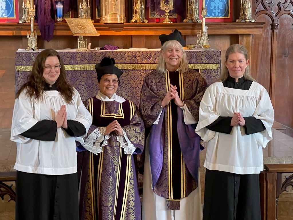 Yesterday at St. Thomas the Apostle, Hollywood, we celebrated Mass with as many women as we could muster in honor of International Women’s Day. The Reverend Mother Susan Stanton, the chief financial officer for the LA Diocese, was our celebrant; Canon Ian Davies, served as deacon and preacher; I was the subdeacon; Stephen Kemp, master of ceremonies; Michelle Waterloo, thurifer; Kayla Ray, crucifer; and Jennifer Parker and Sarah Schulz, torches.