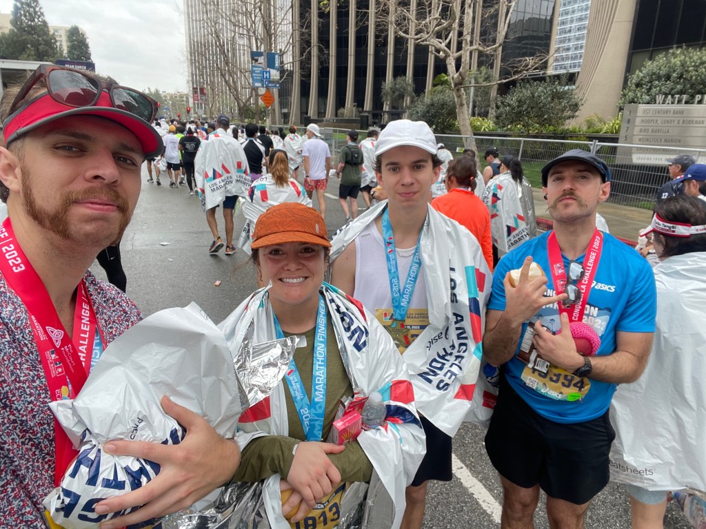 Today, my daughter Rachael and son-in-law Ron (Liz’s husband) ran the LA Marathon for the first time; Andrew (Rachael’s boyfriend) ran it again after several times, and Andrew’s little brother (Michael) also ran it and I’m not sure if it was his first time or not. The bottom line is that these four people ran 26.2 miles today from Dodger Stadium to Century City and actually finished with smiles on their faces. It’s a little hard to even comprehend anyone running 26.2 miles in one stretch, which took them a little more than five hours. At the very least, I am extremely impressed, and, at the very most, bursting at the seams with pride for the successful culmination of the year’s worth of training they have all put into preparing for this very tough challenge. Congratulations Rachael, Andrew, Ron, and Michael. You are awe-inspiring.