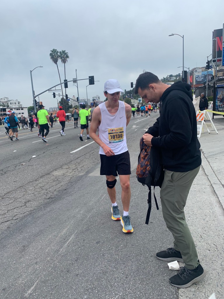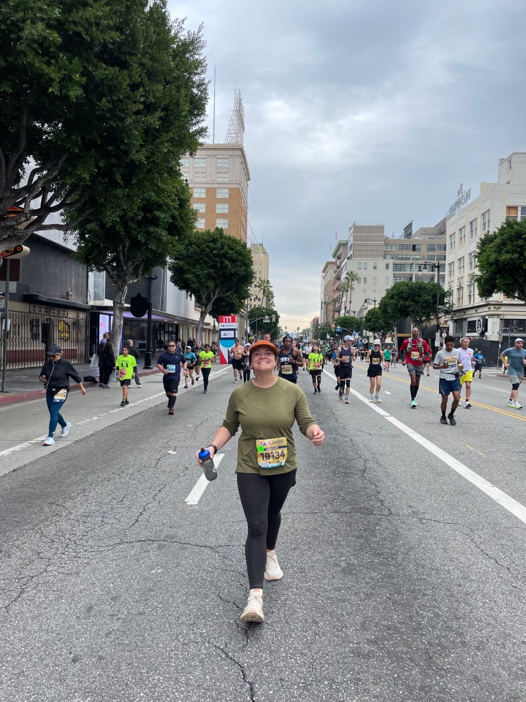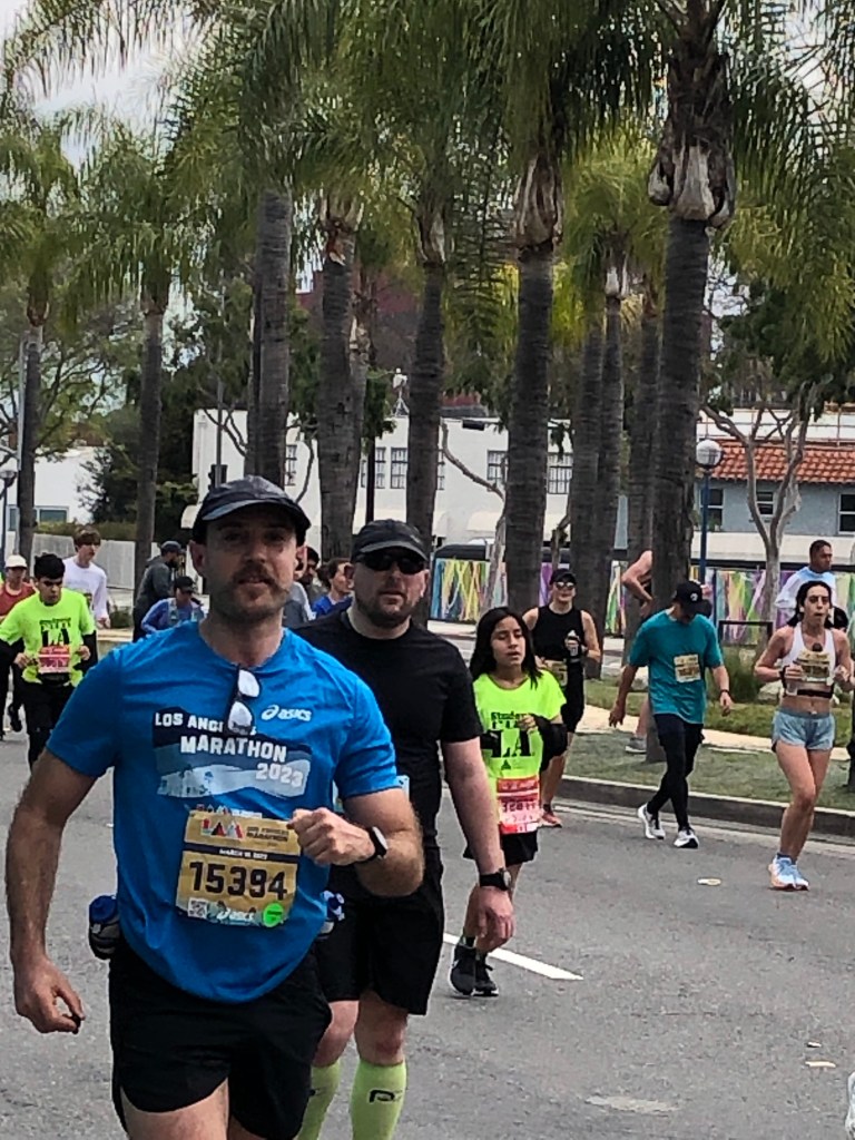 Here are a few photos of the run. Several people were on the “support team” and were spread across several locations. This allowed for lots of encouragement and some good photo opportunities. So, here they are, the four LA Marathoners in their quest to reach the finish line, which they did while smiling. Again, wow.