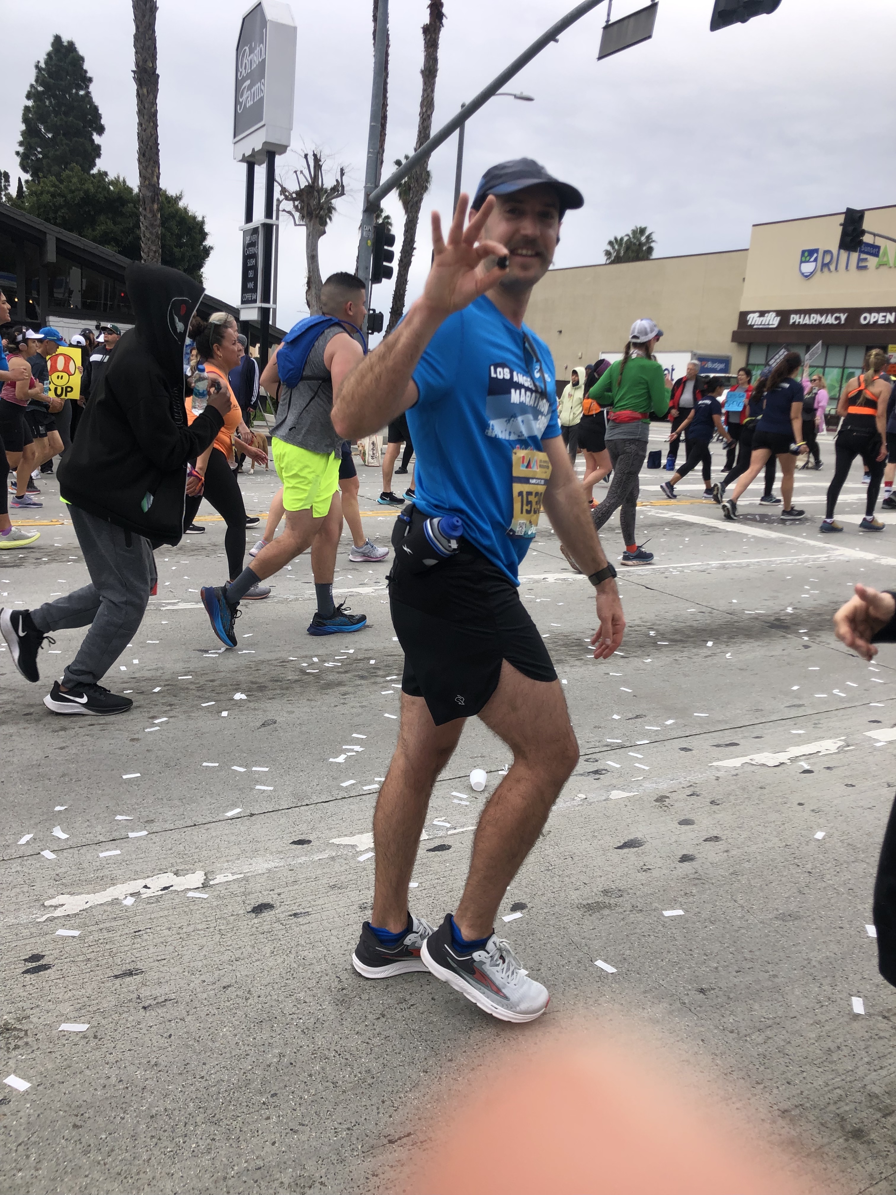 Here are a few photos of the run. Several people were on the “support team” and were spread across several locations. This allowed for lots of encouragement and some good photo opportunities. So, here they are, the four LA Marathoners in their quest to reach the finish line, which they did while smiling. Again, wow.