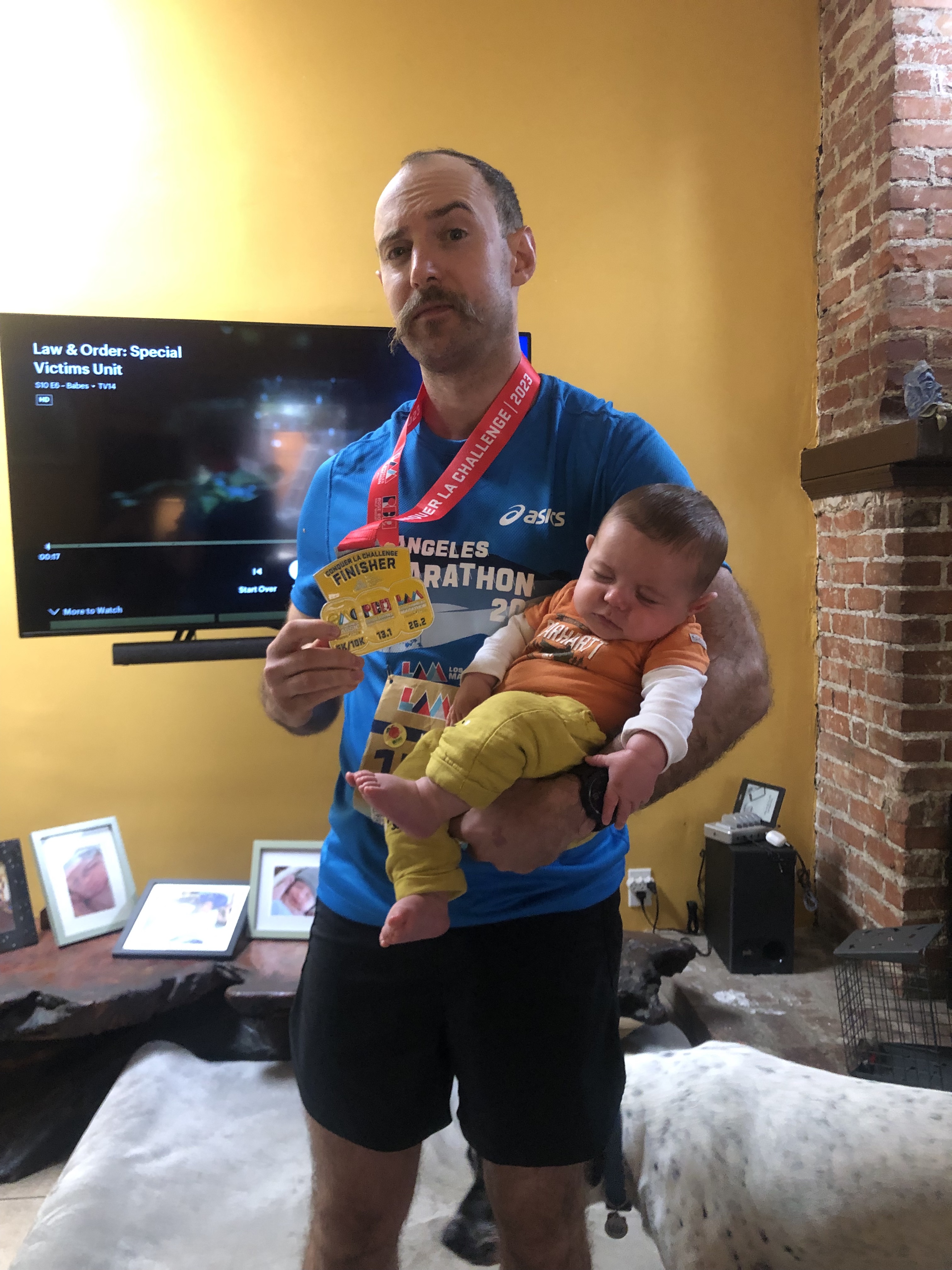 Post-Marathon: Ron and Baby Ethan (who doesn’t look all that impressed)