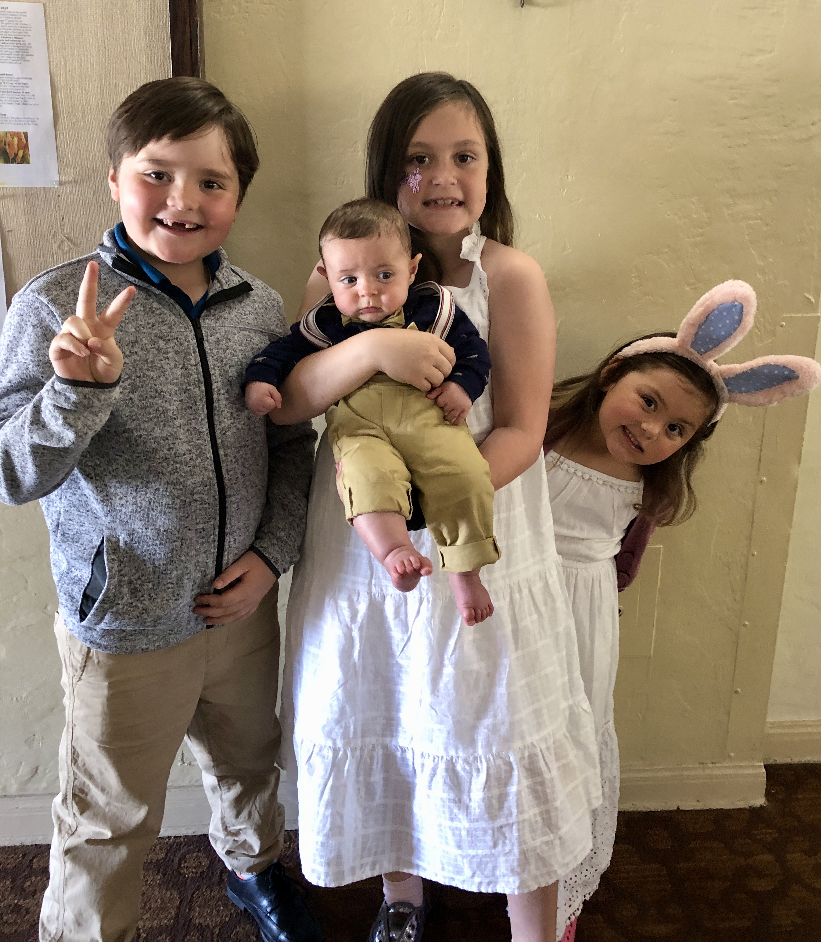 Nico, Sarah, and Lyla at St. Thomas, the Apostle’s Egg Hunt