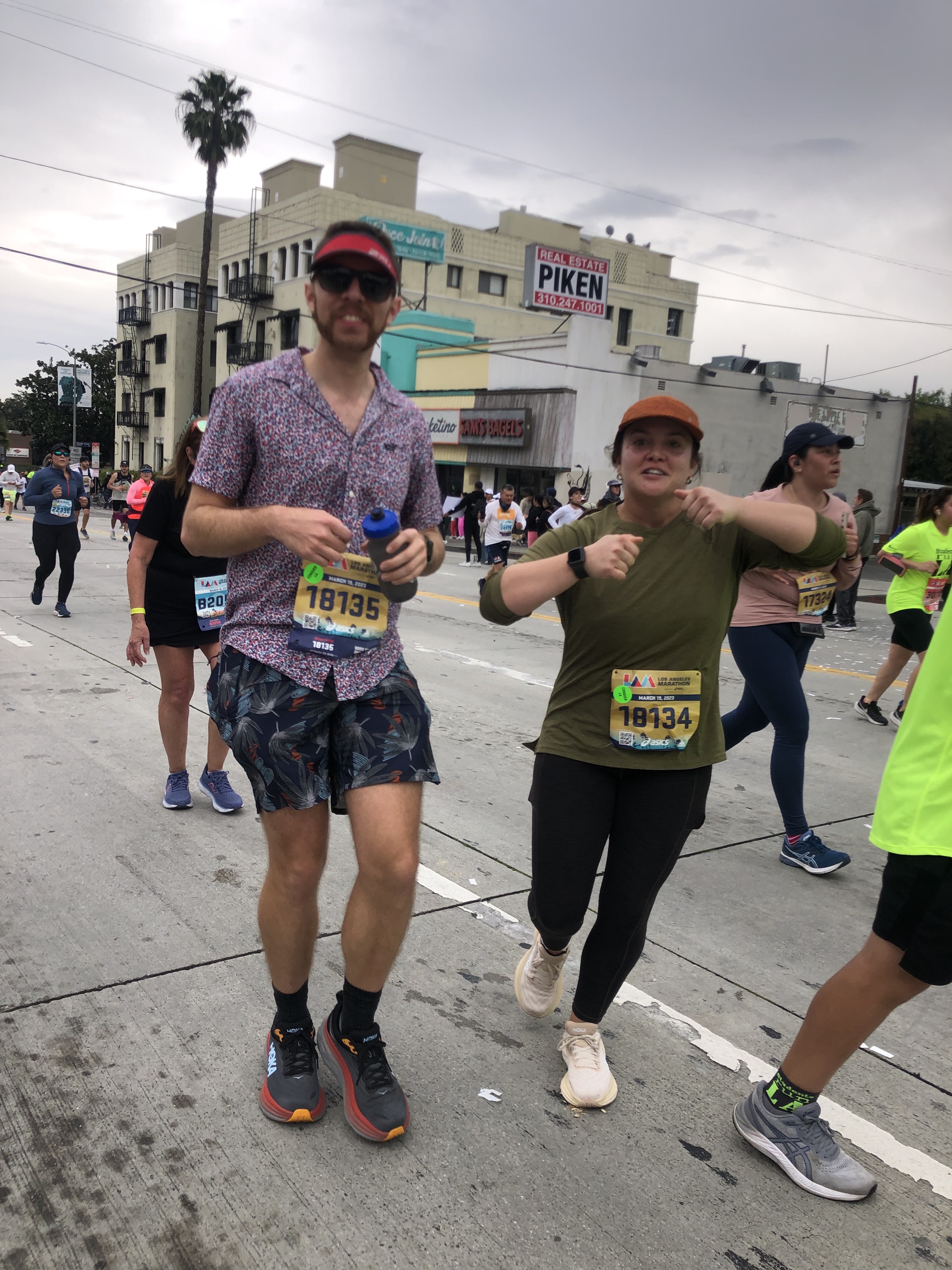 Andrew and Rachael running the recent LA Marathon, which they finished! Nice work, guys.