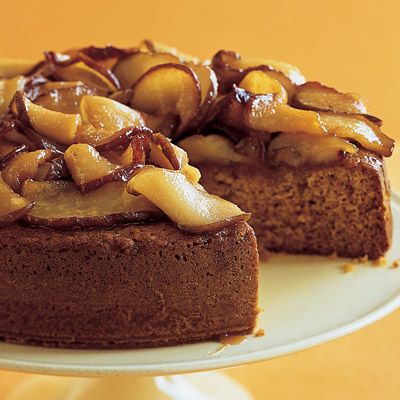 - Bake until dark golden brown and a cake tester inserted in center comes out clean, about 50 minutes. Let cool in pan on a wire rack 15 minutes. Run a thin knife around edge of cake; carefully remove sides of pan. Transfer cake to a platter. Top with pears. Serve with whipped cream or topping, if desired.