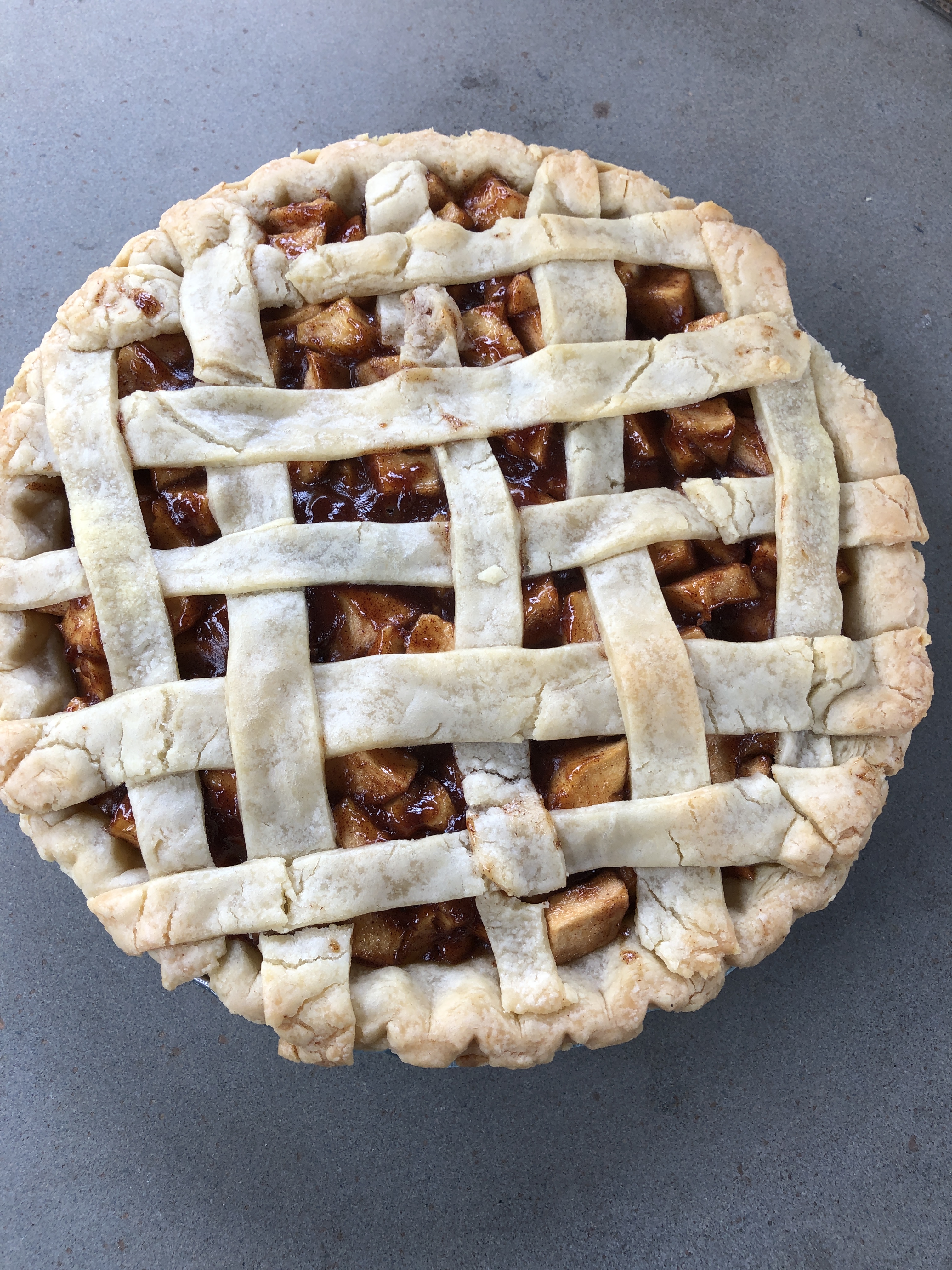 Below is a photo of the pie I made today. Not the prettiest latticing job I’ve ever done, but it still tasted just fine.