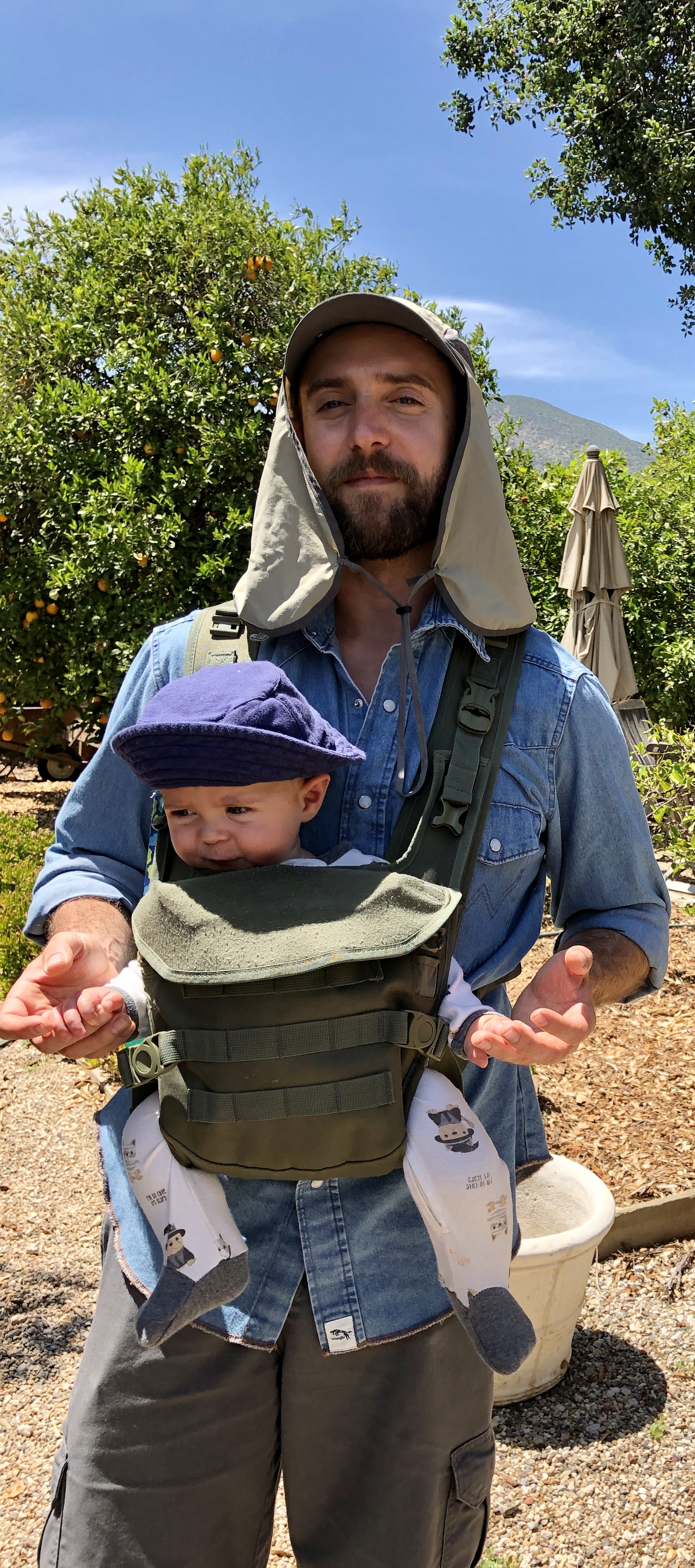 I snapped this photo of Ron and Ethan today up in Ojai. The days are getting warmer and the sun is strong. Hats are a necessity and neck protectors are wise for those who tend to burn even on a day like today. This is just the beginning of the warmer weather that Ojai has to offer. Right now it’s only 75 degrees and will climb to 83. Tonight, it’ll dip back down to the mid-50s. However, the UV Index is 10.9 right now, which is considered very high, especially with you keep in mind that 11+ is extreme. By mid-summer, it’ll be too hot and the sun too intense to be out in the middle of the day without lots of sun protection.