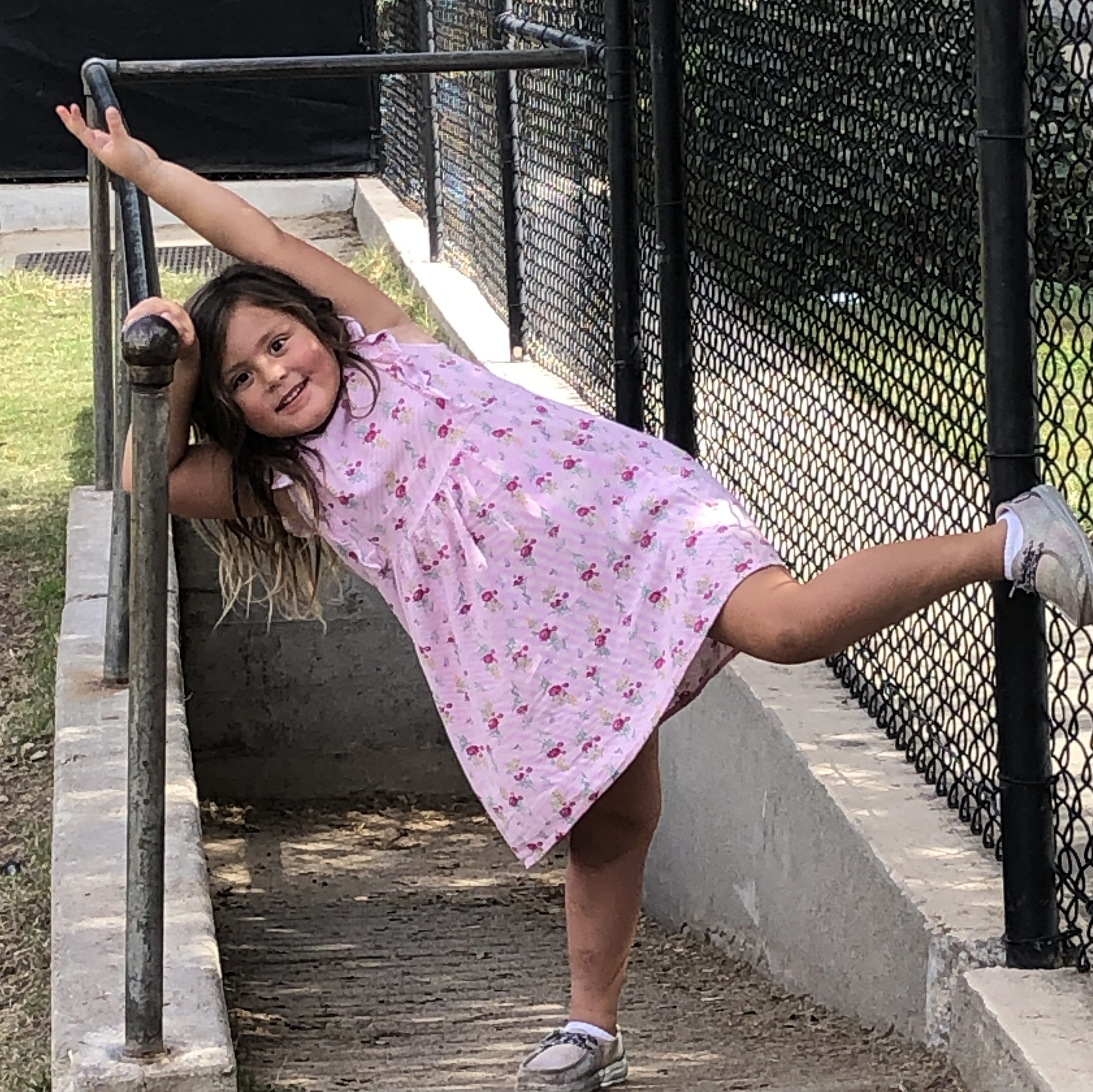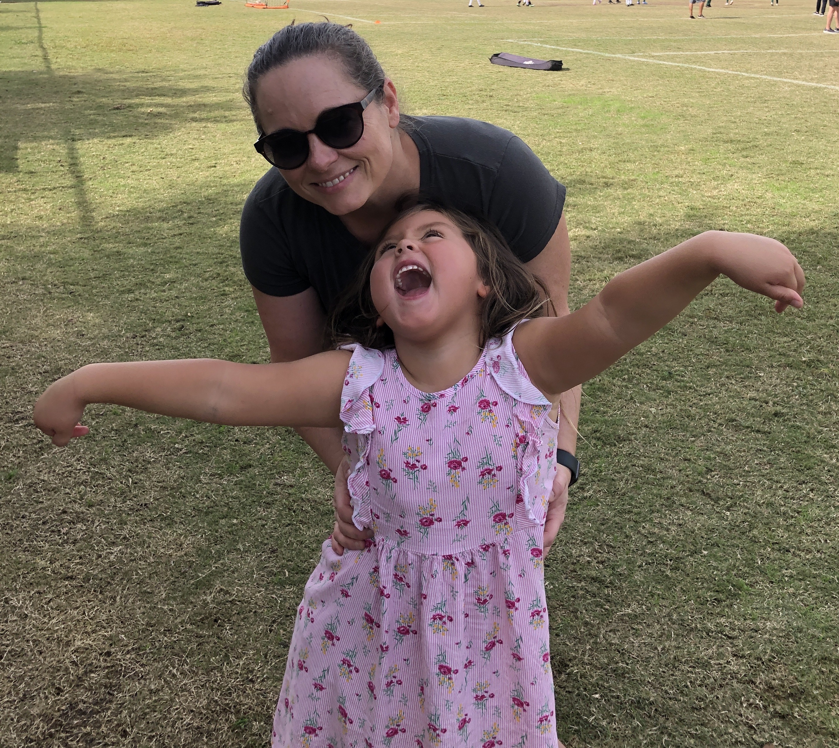 Lyla, who is four, was busy on the sidelines. She at first only wanted to play with her mother, but then headed off to practice some of her gymnastics nearby. She is a very smart little girl who also looks older than her age.